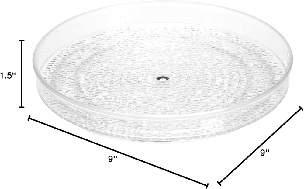 EFFICIENT SIZE: The plastic lazy Susan turntable measures 9" x 9" x 1.5" to add instant organization to your vanity or countertop.