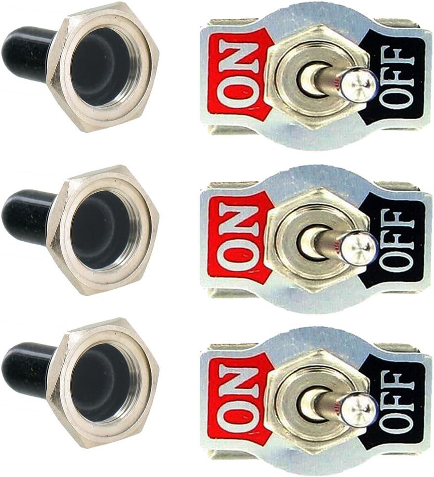 Etopars 3 X Heavy Duty 20A 125V 15A 250V SPST 2 Terminal Pin ON/OFF Rocker Toggle Switch Flick Metal Waterproof Cap Knob
