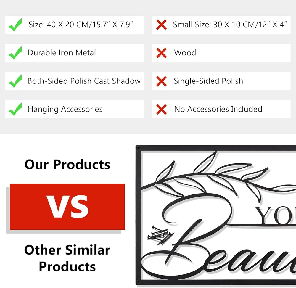 Easy to Hang: we have designed 4 holes for women black line motivational wall art decor in advance, so you can fix the metal wall art with nails or ropes, convenient for you to install and disassemble and can create a 3D visual effect, minimalist and creative, modern and eye catching, will match most home styles.Hanging motivational sign bedroom wall decorations for girl can be hung in your bedroom, bathroom, living room, office, dining room, study, cafe, florist, and more.
