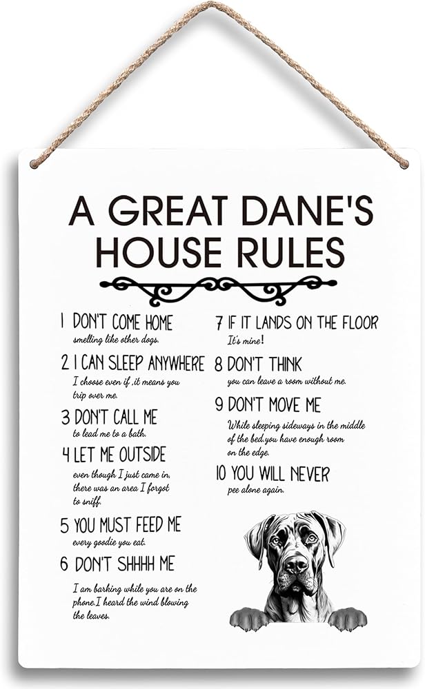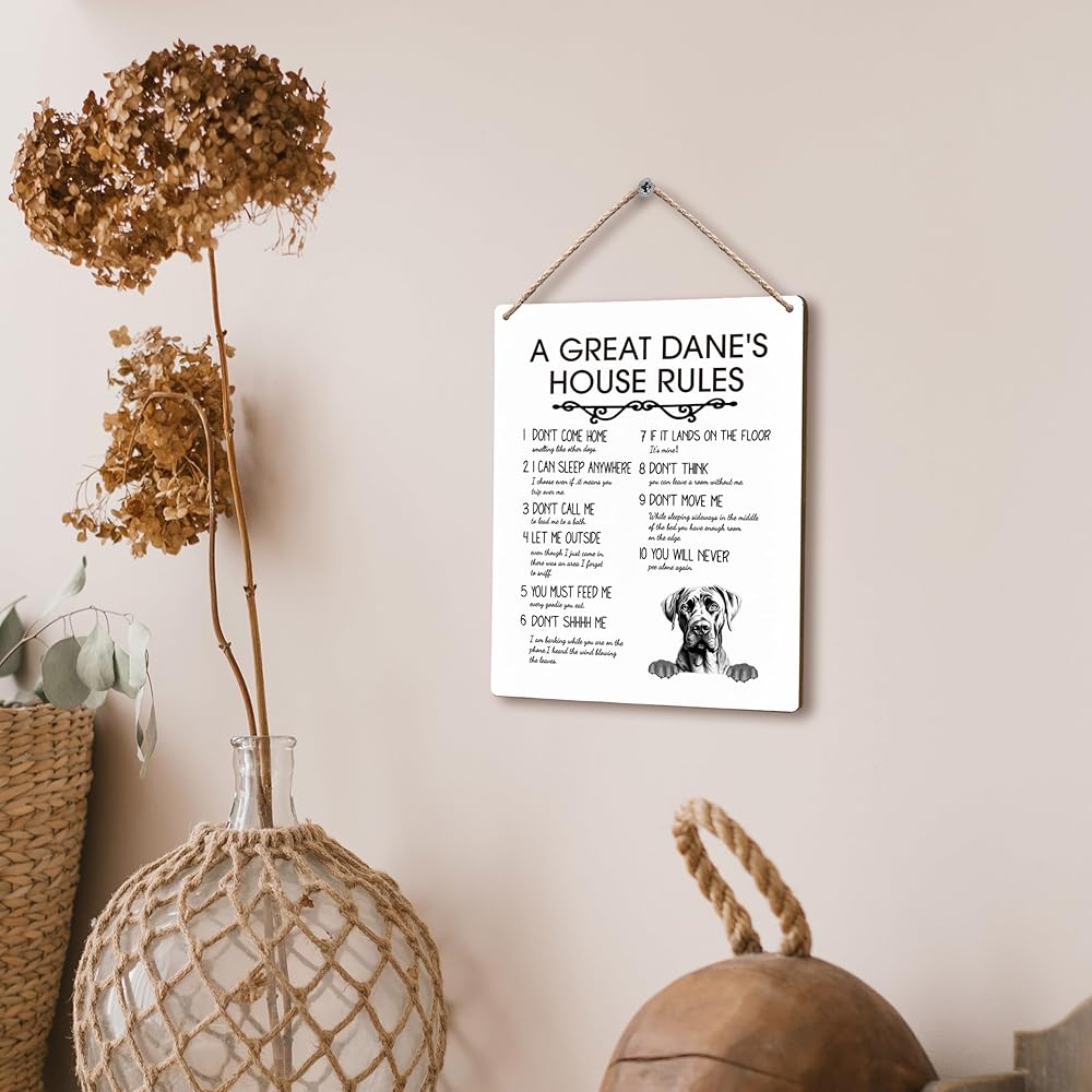 A Great Dane’s House Rules Dog Wooden Signs 8x10, Great Dane Gifts, Dog Signs for Home Decor, Dog Decorations for the Home, Dog Wall Decor, House Rules Sign, Gifts for Dog Lovers Owners