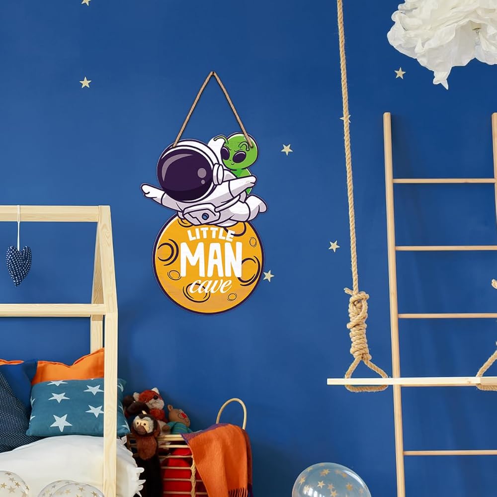 • Outer Space Room Decor: This space-themed decorative wooden sign has a unique shape and uses space elements such as astronauts and planets. The design is full of childlike interest. Especially suitable for little boys who love space. It's easy to make a space more attractive and interesting with simple yet effective decor.