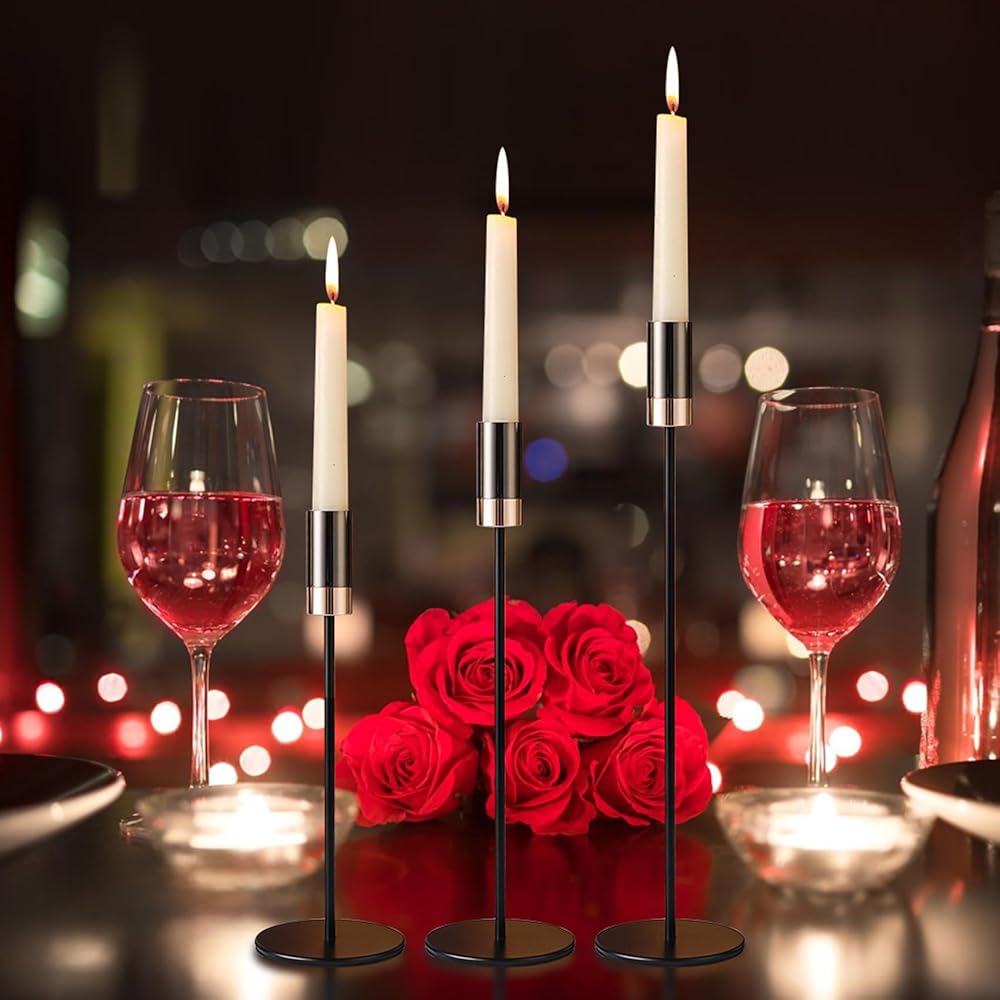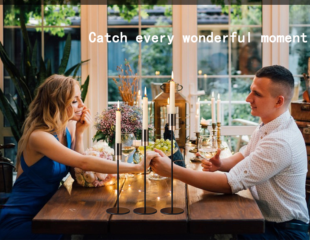 ✨【Sturdy And Stable Taper Candle Holders】✨ The bottom of the tapered candlestick holders is made of soft black flannelette and metal which reduce furniture friction and damage, candles can also be held very stably without tipping over easily. The sturdy, solid design makes it durable enough. Increases some gorgeous color to your life. Make you get many compliments on it.