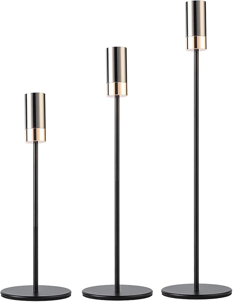 Enjinkail Black Candlestick Holders for Taper Candles Set of 3, Gold Candle Holder Centerpieces for Tables, Candle Sticks Holder Decor for Wedding, Dining, Party, Anniversary, Fits 3/4 inch Candle