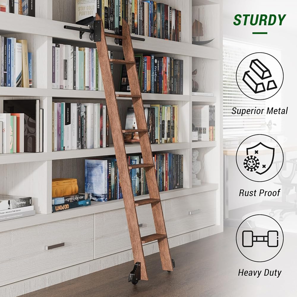 MOVES SMOOTHLY: Both top and bottom rollers are provided in our library sliding ladder hardware kit, ensure that the ladder slides steadily and smoothly. All roller structures are manufactured with professional technology, allowing you to move ladders easily