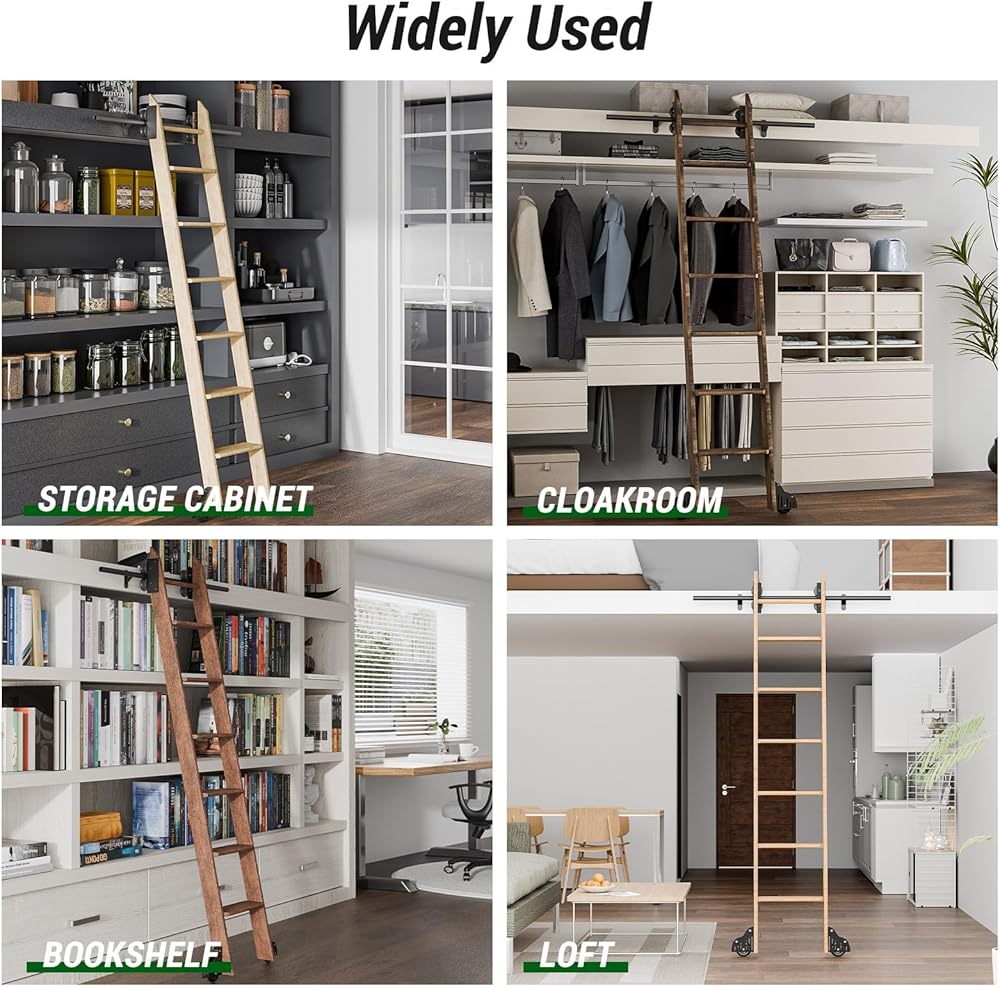WIDELY USED: If you have trouble moving a ladder repeatedly, try our product that allows you to move the ladder easily. Our library sliding ladder hardware kit are easy to assemble and can be used or bookshelf, loft, closet, storage room and warehouse
