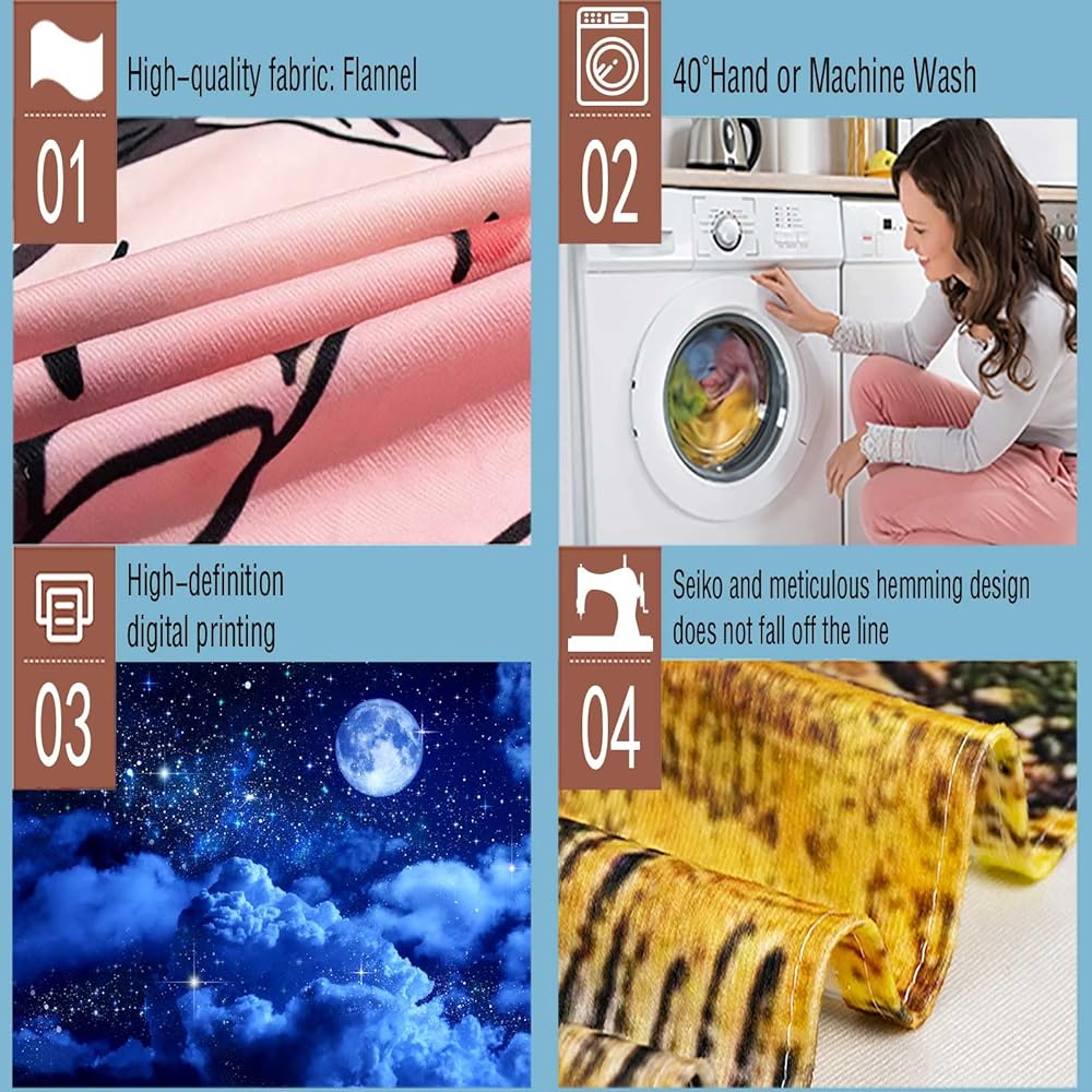 • ☎ High-quality technology: high-definition printing technology has vivid colors and clear images. Dyes that will not fade and will not harm family health. Super comfortable feel, durable, light weight, easy to handle, smooth, comfortable, skin-friendly, durable, fast-drying and non-fading. The most suitable for your home decoration.