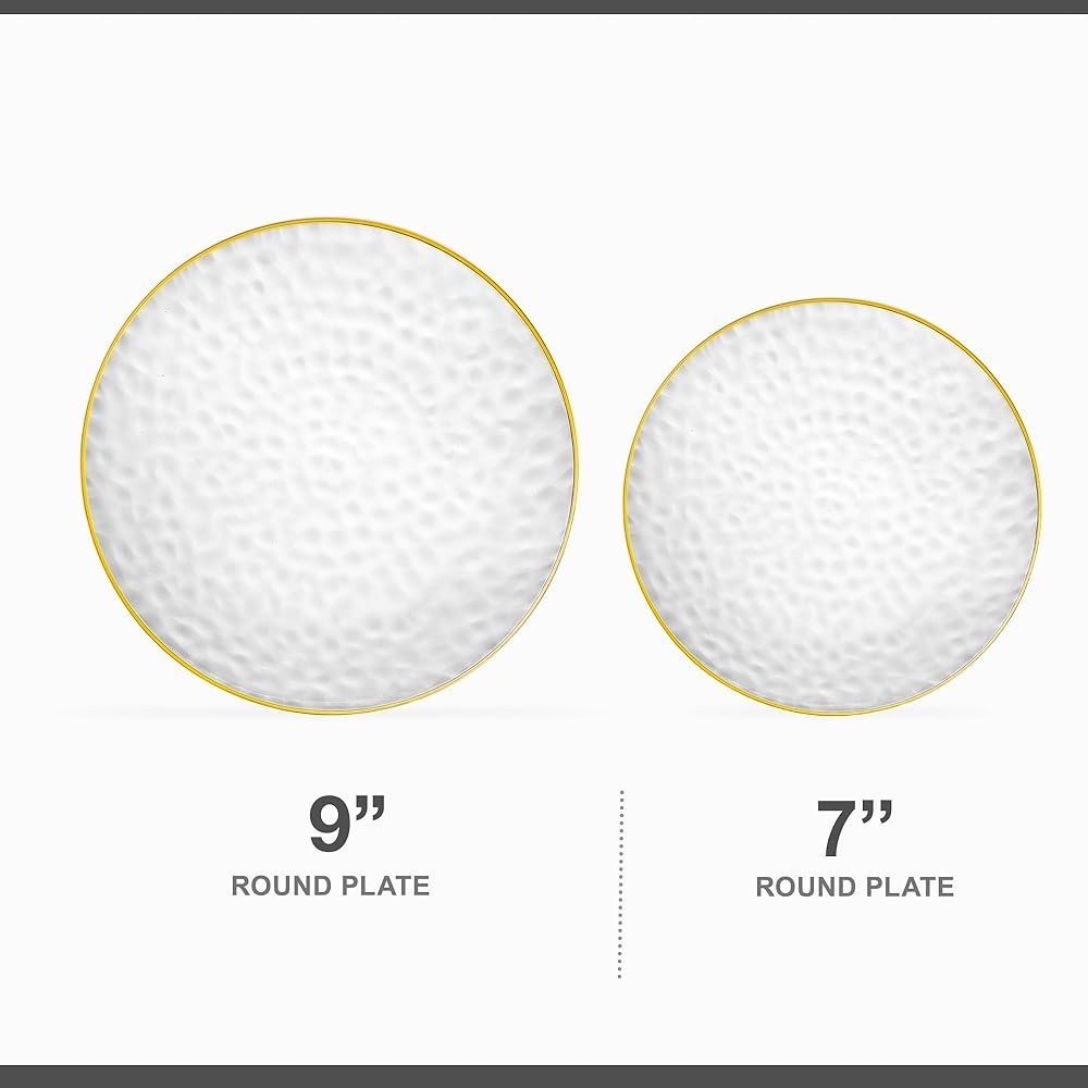 Plasticpro 32 Piece Combo Plates Set includes 16 - 7'' inch Plates & 16 - 9'' inch Plates Clear Plastic Organic Hammered Design Party Plates With Gold Rim, Premium heavyweight Elegant, Disposable, Tableware, Dishes,