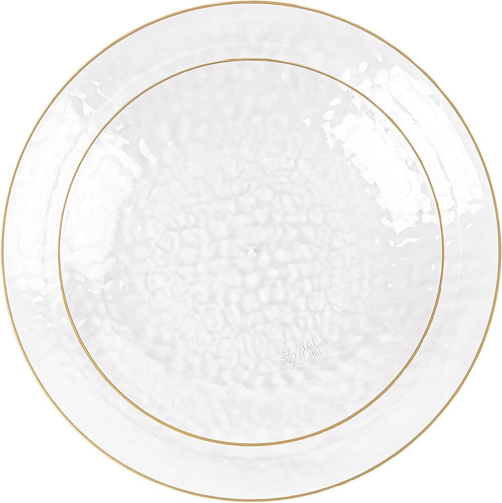 ELEGANT DESIGN: Gold Rimmed Clear plates With Magnificent organic hammered Designed China like Plate, Will have elegant and exquisite appearance,
