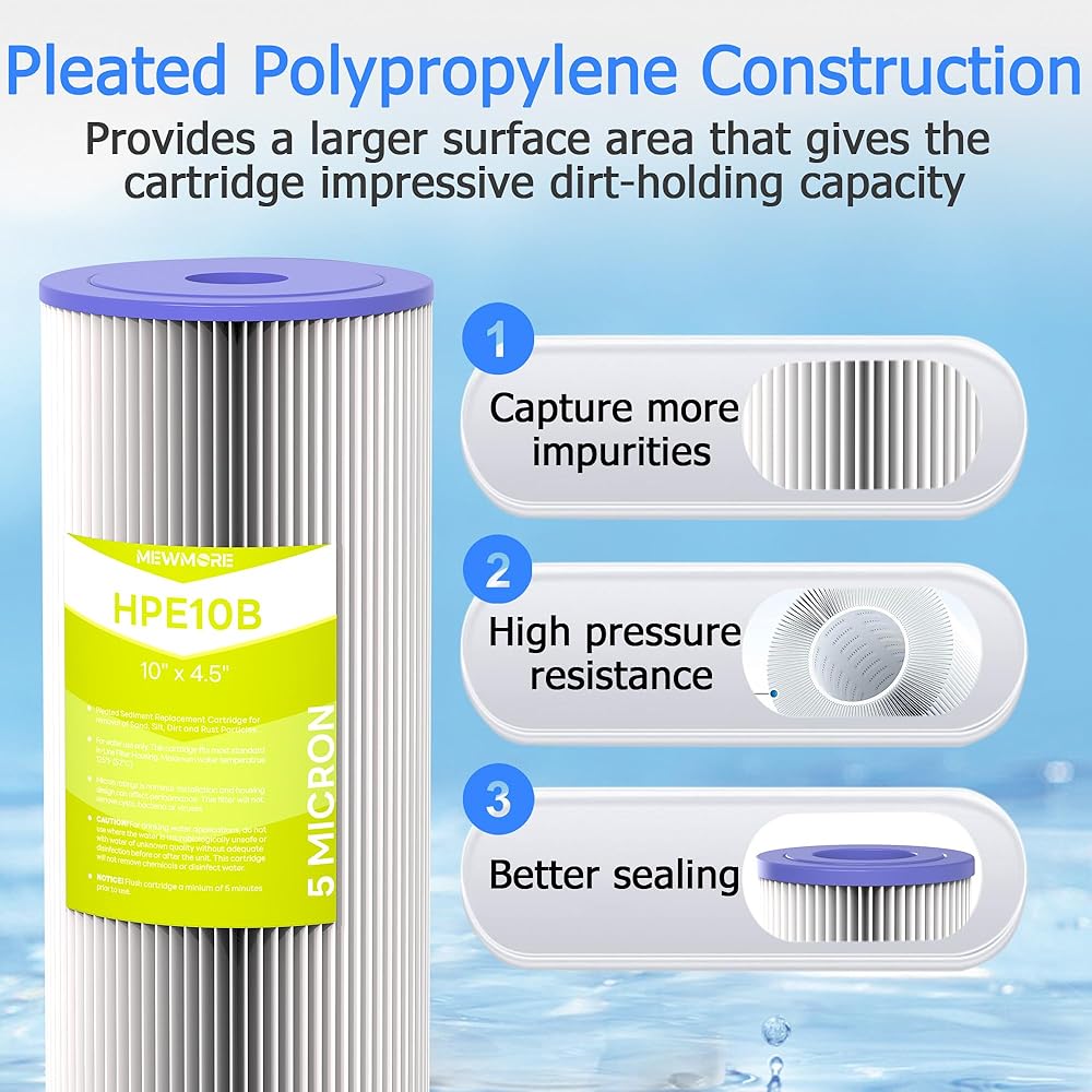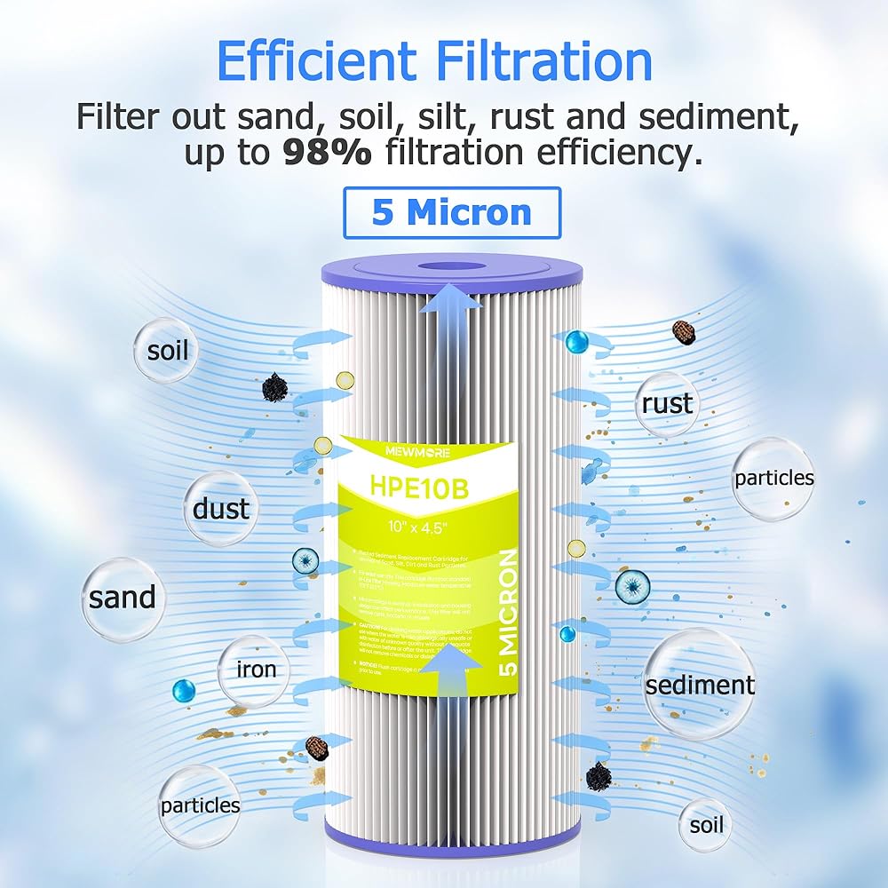 Highly Efficient: Our replacement water filters feature a pleated structure, offering a significantly larger filtration area than other sediment filters of the same size. This design ensures superior filtration efficiency and extends the lifespan of the filter