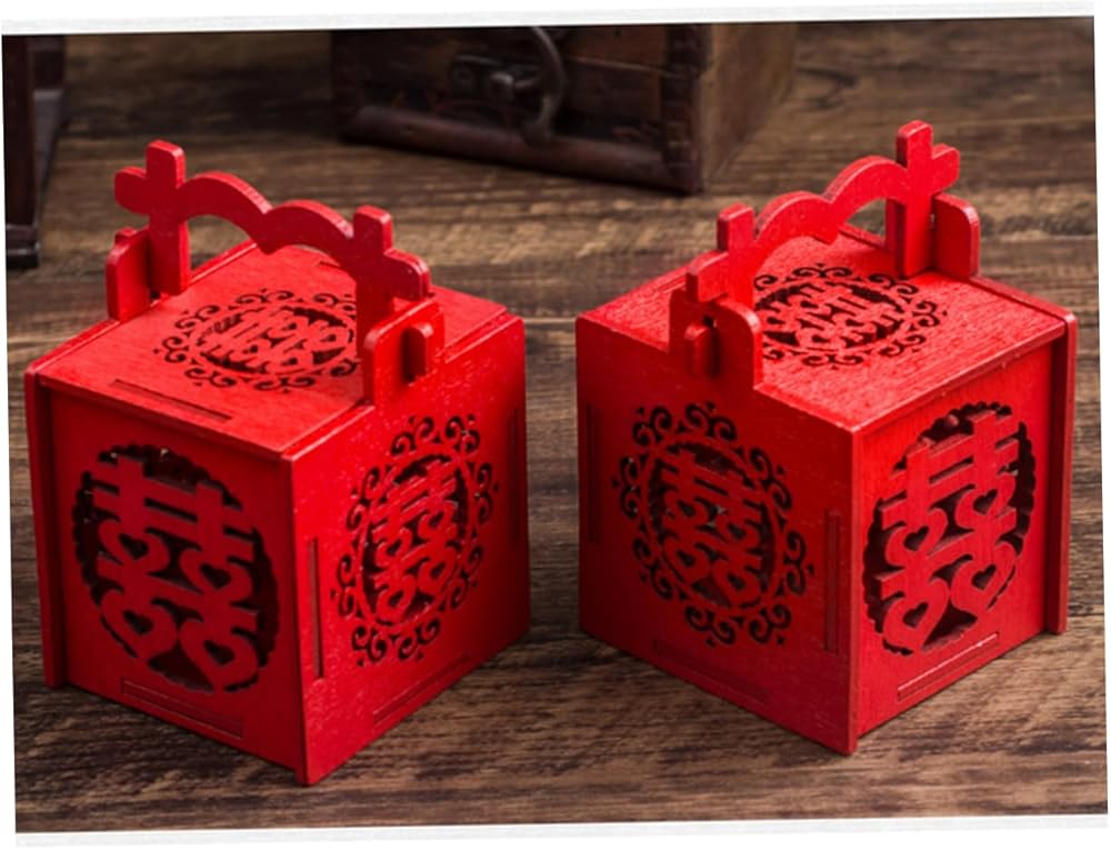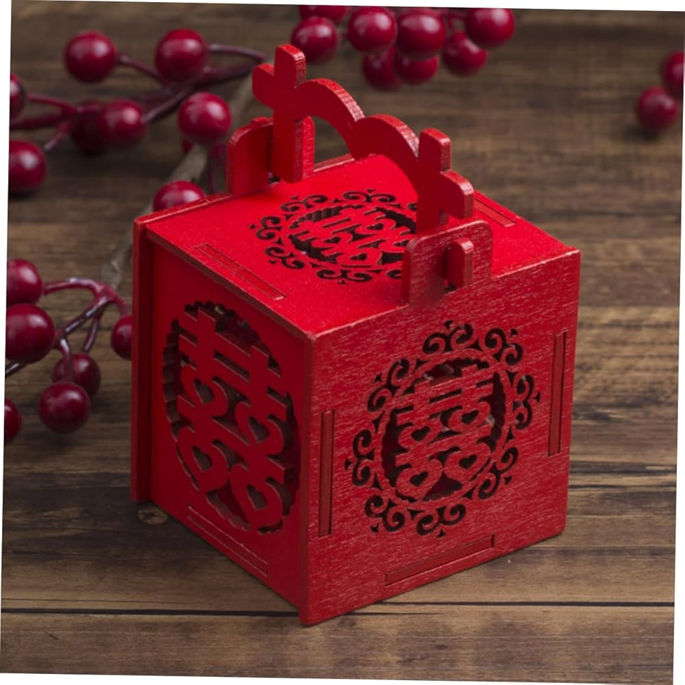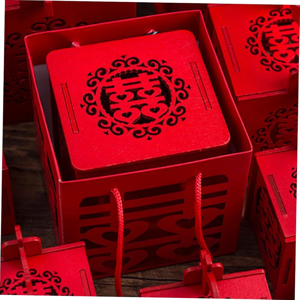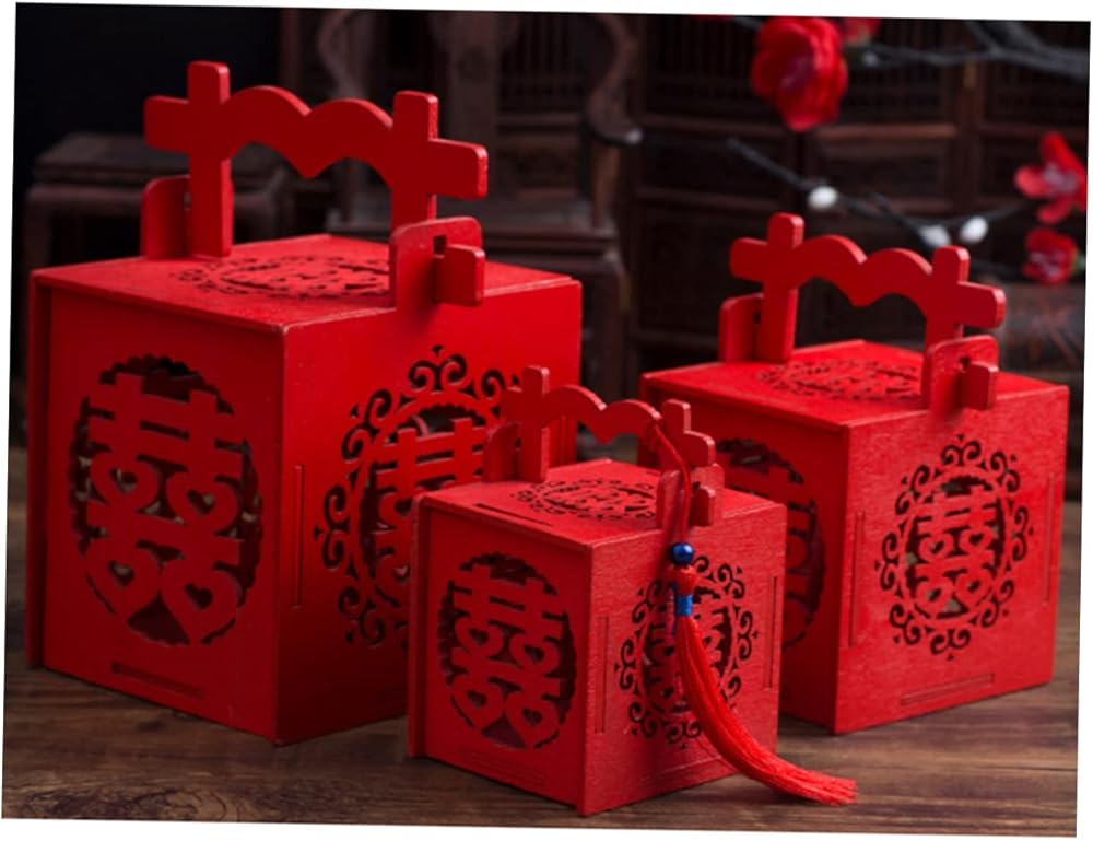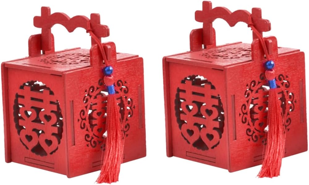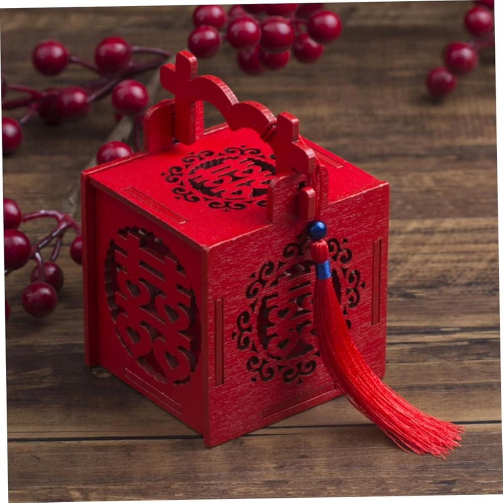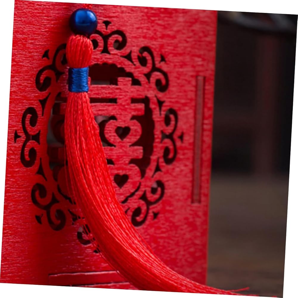 Mini candy box: 🎁🍬😍chinese snack box, wedding party favor box with tassel red double happiness wood sweet treat box chinese wedding favors holders hollow out. unique chinese style pattern with tassel design, unique and special, perfect for most occasions.