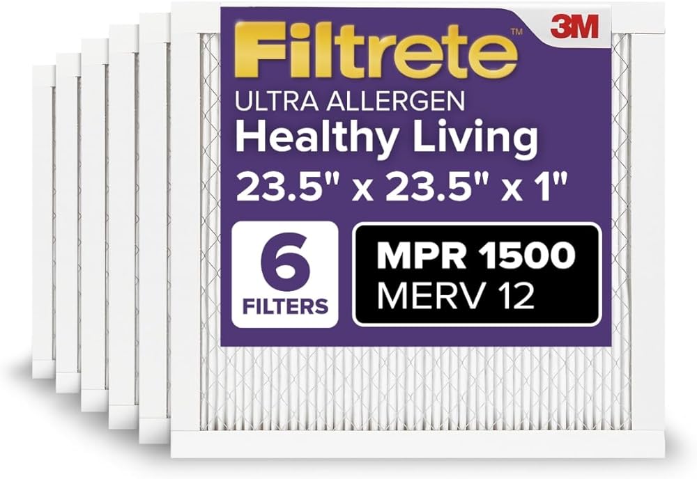 Filtrete 23.5x23.5x1 MPR 1500 Air Filter, made by 3M, helps capture unwanted particles from your household air to contribute to a cleaner, fresher home environment. Designed with exclusive Filtrete 3-in-1 technology, including a high MPR 1500 and MERV 12 rating, your AC filter will help pull and capture countless microparticles – such as pet dander, smoke, bacteria and up to 54% of virus airborne particles (1) – while letting cleaner air flow through. Your Filtrete Filter will also capture large particles, including lint, pollen and household dust. This filter is also CERTIFIED asthma and allergy-friendly (2). Use a 3-month pleated 1-inch home HVAC filter in your furnace, air conditioner or HVAC system. For optimal performance of your heating and cooling system or HVAC system, change your furnace filter at least every 90 days.