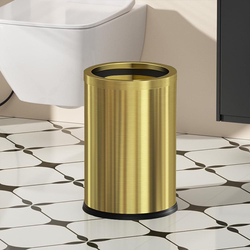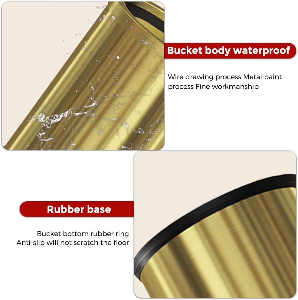 【حلقة ضغط من الفولاذ المقاوم للصدأ】: الحلقة الذهبية الموجودة في فم سلة المهملات مصنوعة من الفولاذ المقاوم للصدأ، سميكة ورقيقة، وتُستخدم عملية الرسم لإضافة مزاج أنيق إلى سلة المهملات.