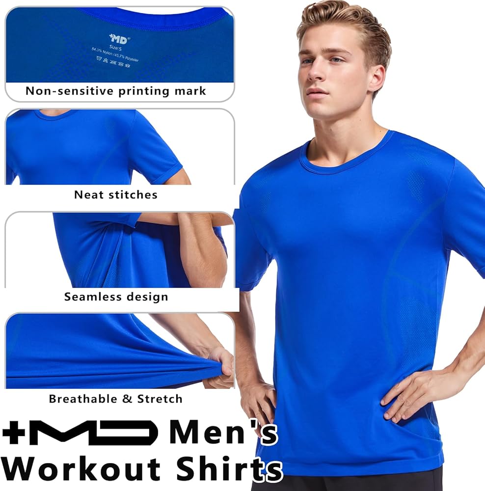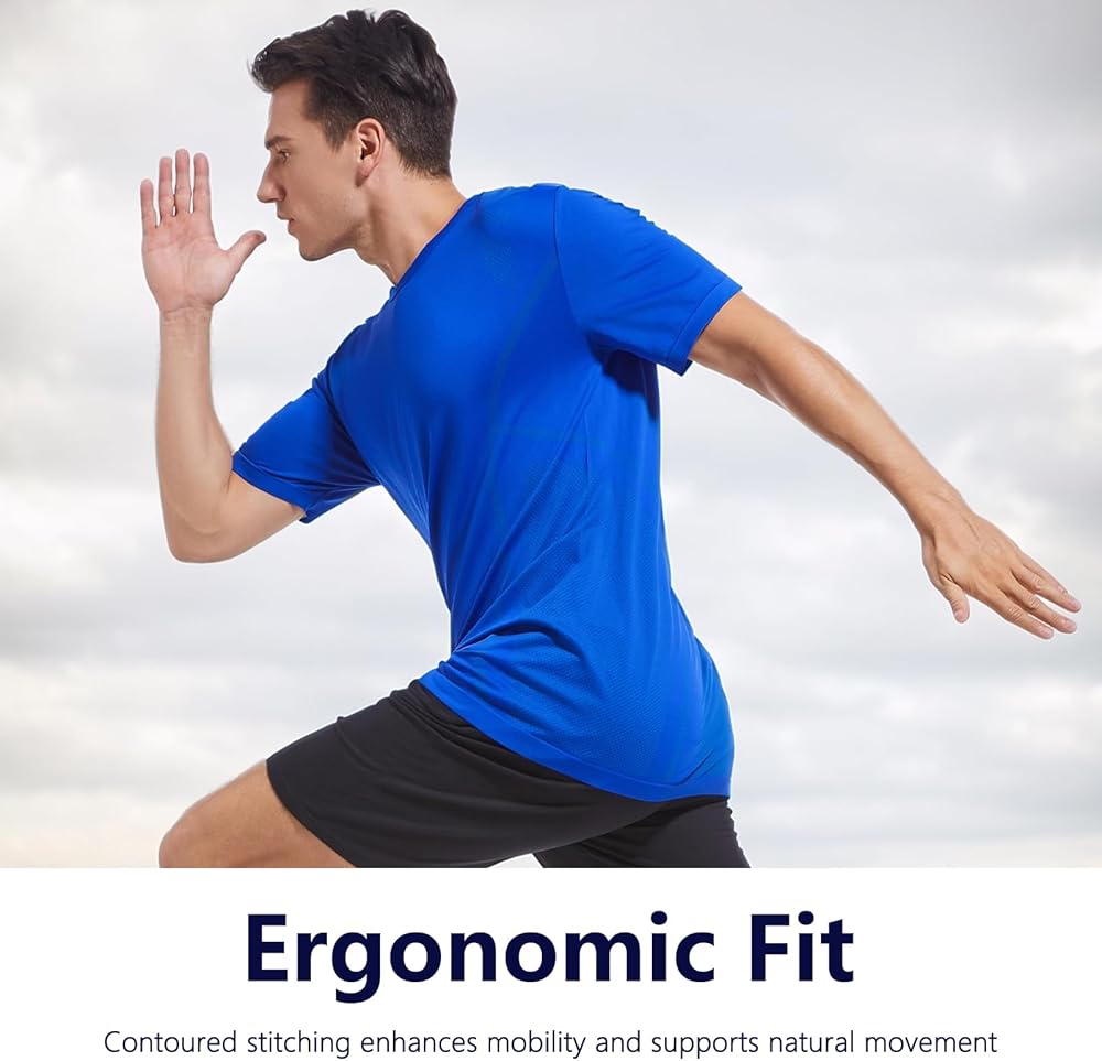 Athletic Fit - Durable fabric with super elasticity, crew neck and short sleeve construction allows for an optimal range of motion, provides a nonrestrictive fit, while streamlining the highlights of your physique.