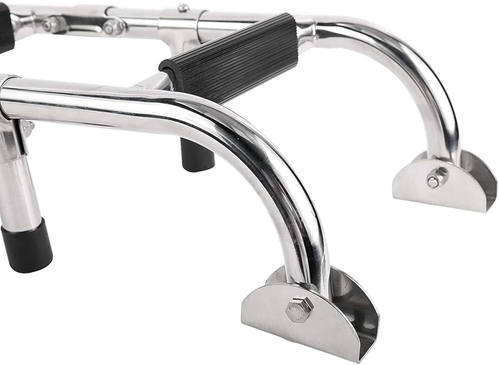 【Premium Material】Made of marine grade 304 stainless steel & non-slip molded black vinyl tread, with guaranteed quality. The supper proof-load of the extendable ladder is enough to support swimmers or divers. The ladder is also safe and reliable since every step has a slip-proof plastic tread.