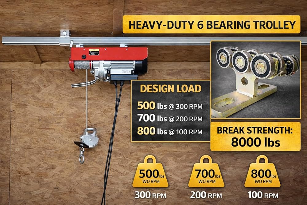 ✪Design load: 500 lbs at 300 rpm; 700 lbs at 200 rpm; 800 lbs at 100 rpm. Break strength: 8000 lbs.