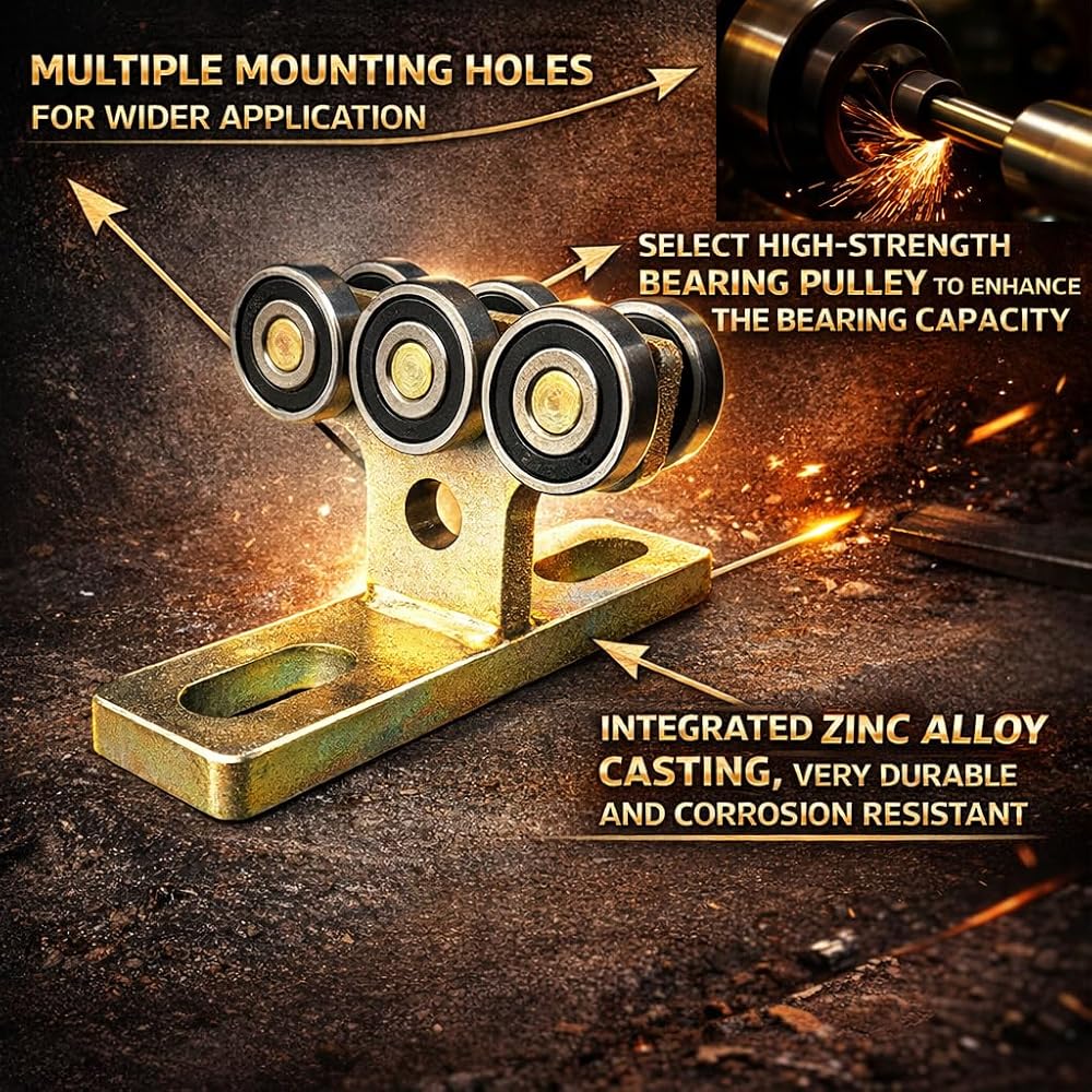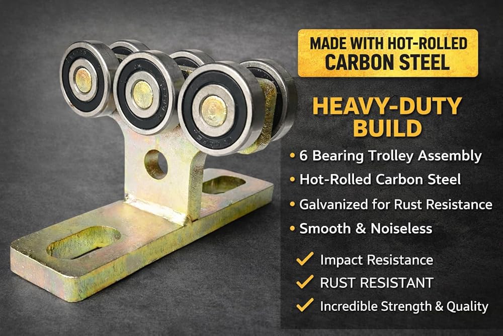 ✪Heavy-Duty Build:6 Bearing Trolley Assembly Made with Hot-Rolled Carbon Steel of solid steel for impact resistance. Galvanized to ensure rust resistance of wheeled trolleys. Smooth and noiseless during use, bearings and pins are firmly welded, work stably, Resulting In Incredible Strength and Quality!