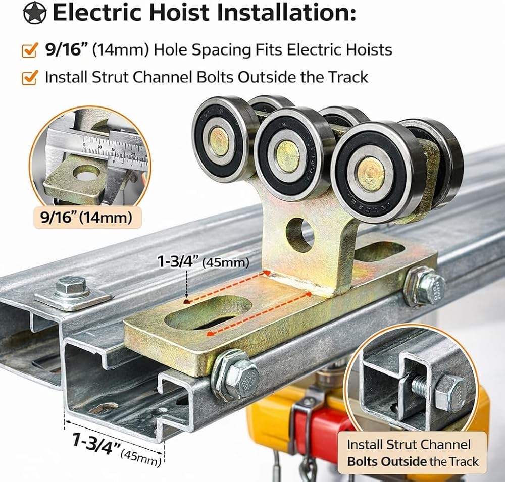 ✪2 way moving installation: it can be used in conjunction with the Strut Channel to set up 2 directions of movement so that the Hoist can work in multiple positions.