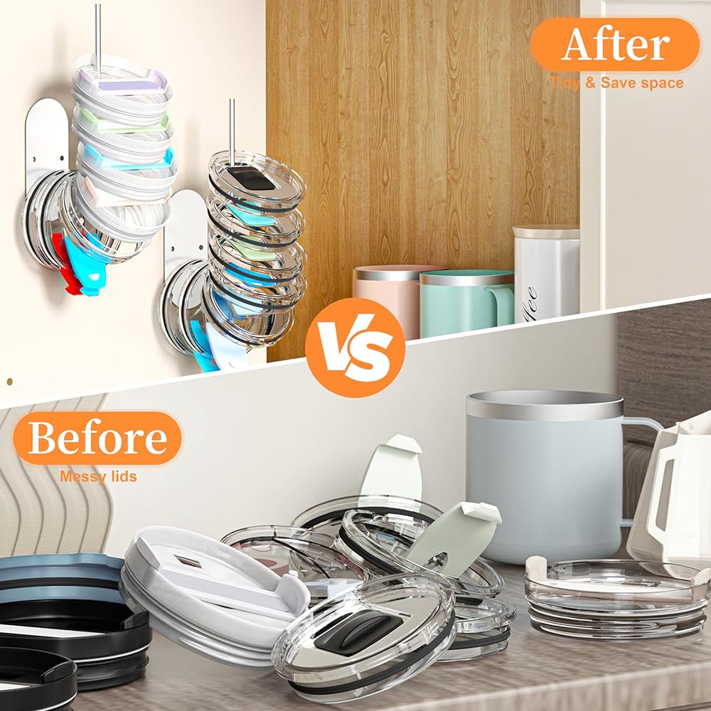 Multifunctional Storage: This tumbler lid storage holder can neatly store cup lids, freeing up valuable cabinet space, thereby bidding farewell to disorder and creating an orderly kitchen environment.