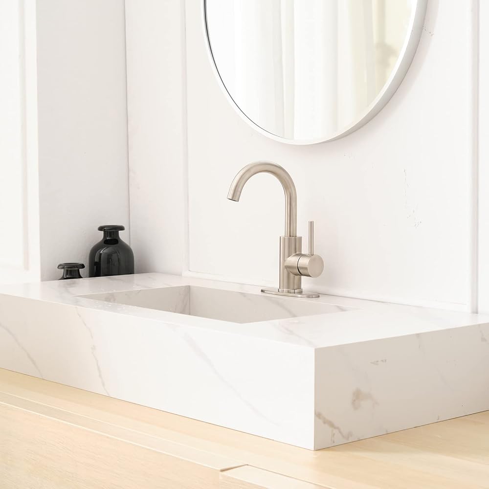 Solid Stainless Steel with Brushed Finish: This kitchen faucet features a sleek, modern brushed nickel finish that protects against scratches, corrosion and discoloration when in use.