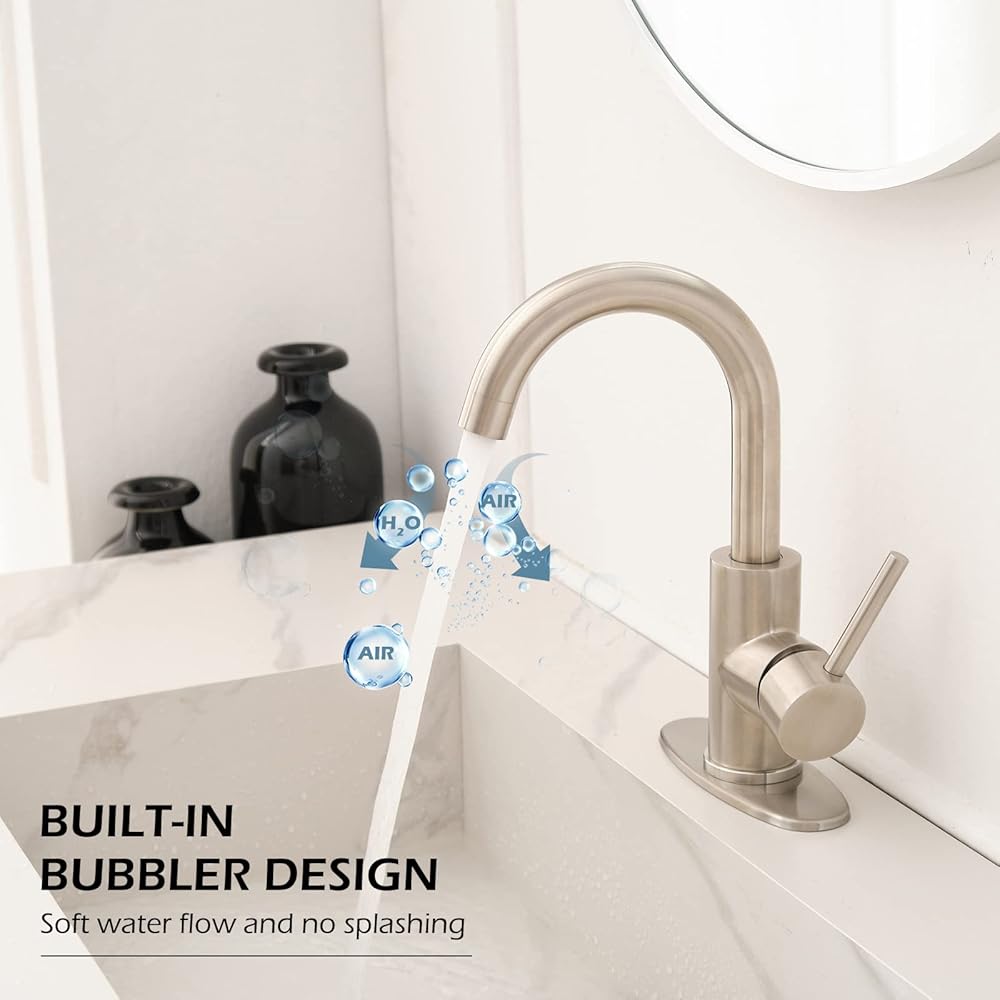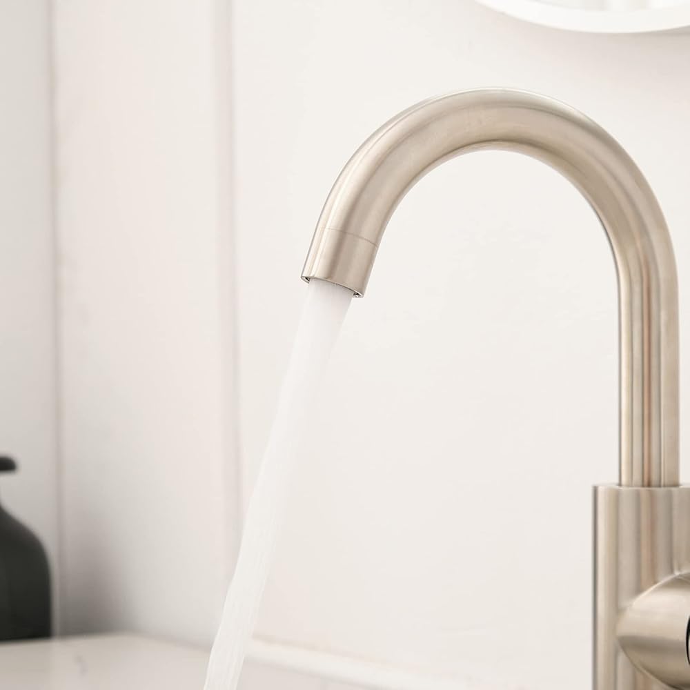 Spout Swivels 360 Degree,1 or 3 Hole: The bathroom sink faucet can be rotated 360 degree randomly , making the washing more convenient. The sink faucet can be used indoor and outdoor. Fits both 3/8" water supply system, single or 3-hole mount faucet.