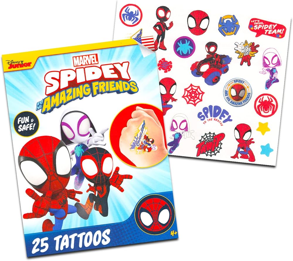 Spidey and Friends Mini Backpack Set - Bundle with 11" Mini Spidey and His Amazing Friends Backpack Plus Tattoos, Water Bottle, More | Mini Spiderman Backpack Set.