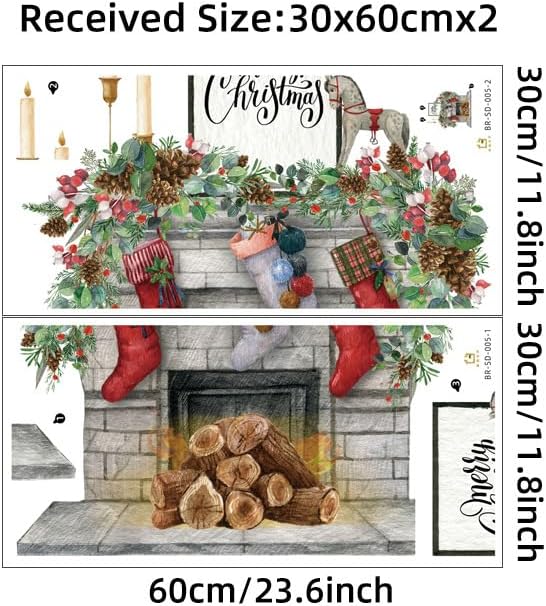 Cartoon Christmas Wall Decals: lovely socks wall sticker,come in a foam bar package.Sheet size is 2pcs 23.6" x 11.8". Display size is about 22.8" x 25.15".It depends on your free creation.