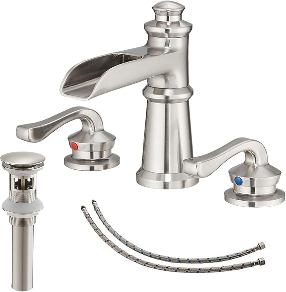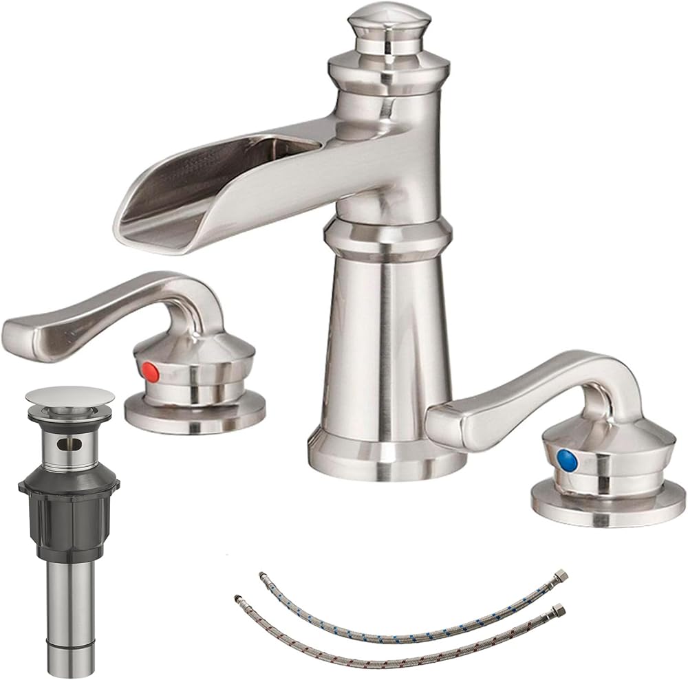 【Widespread Mounted 8 Inch 3 Hole】This widespread bathroom faucet is installed with three holes. The distance between holes needs to be between 8-16 inches, and the diameter of single hole needs to be 1.06-1.5 inches. It has cold and hot double handles, which can adjust the temperature more accurately.We have 24-hour after-sales service and answer product questions in time.