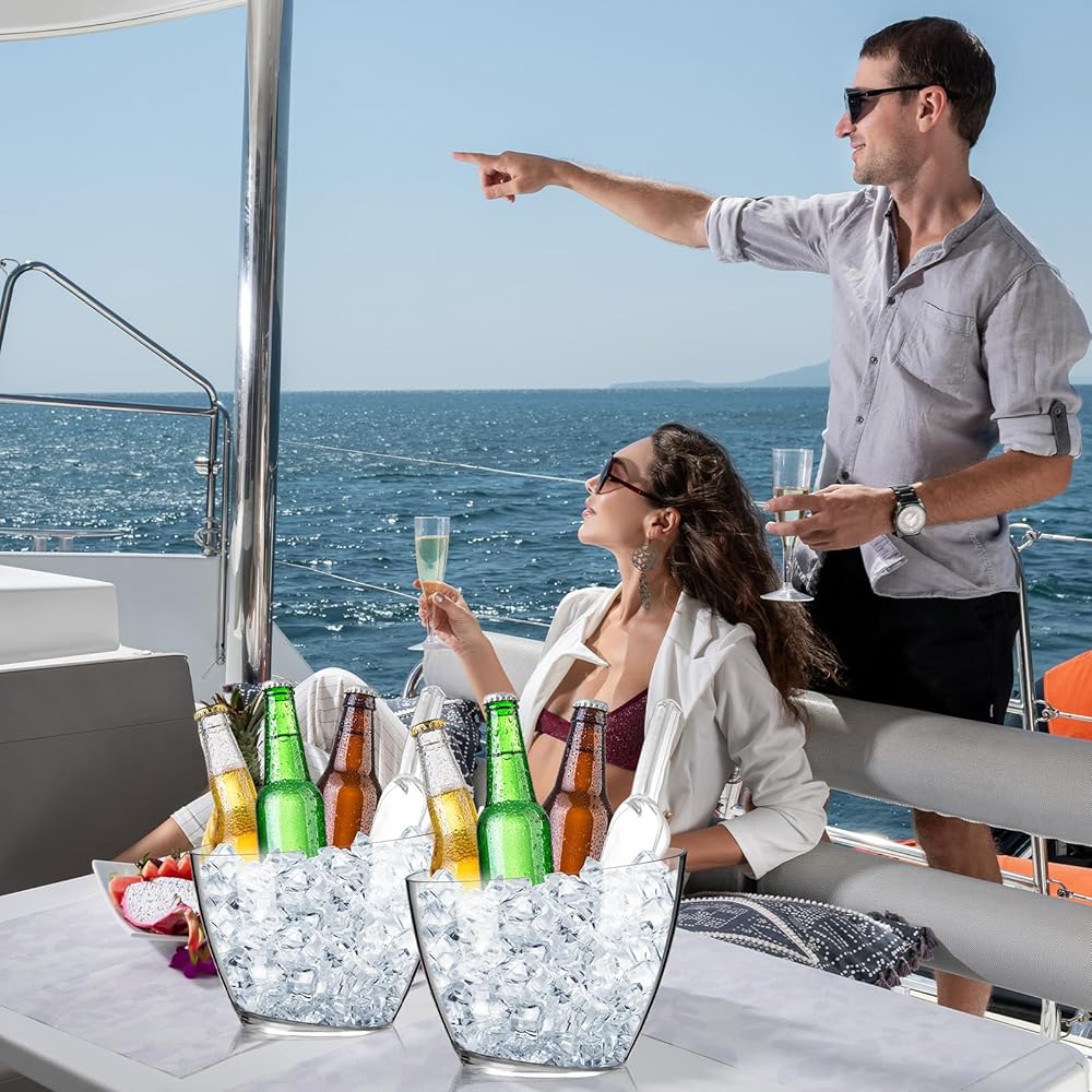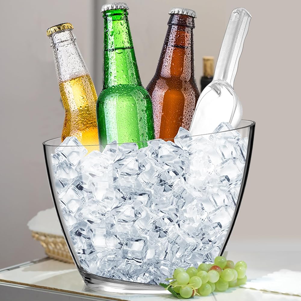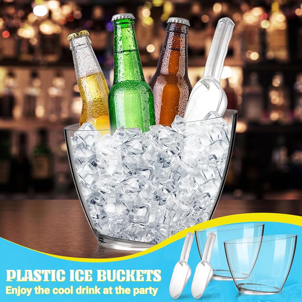 Made of quality plastic, these plastic clear ice bucket are durable, scratch proof, leak proof, not easy to break or deform, and can be applied as reusable drink buckets for parties.