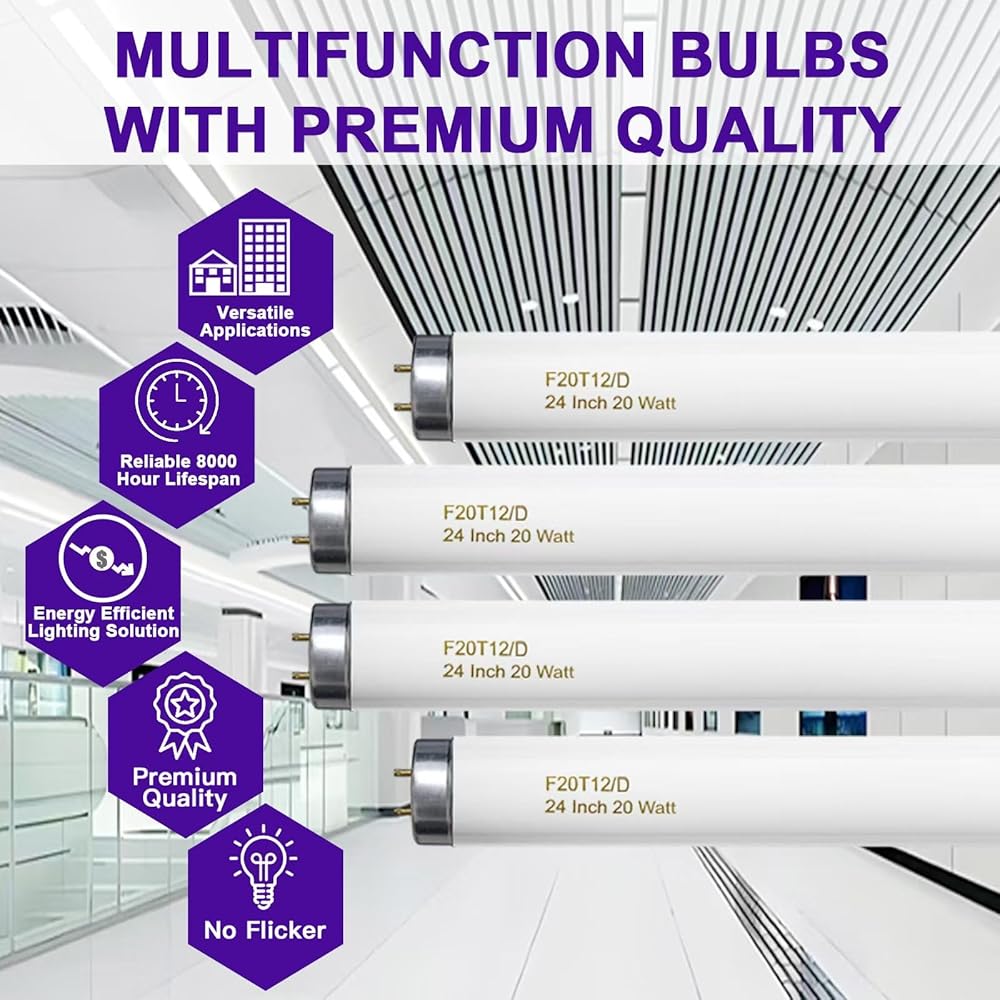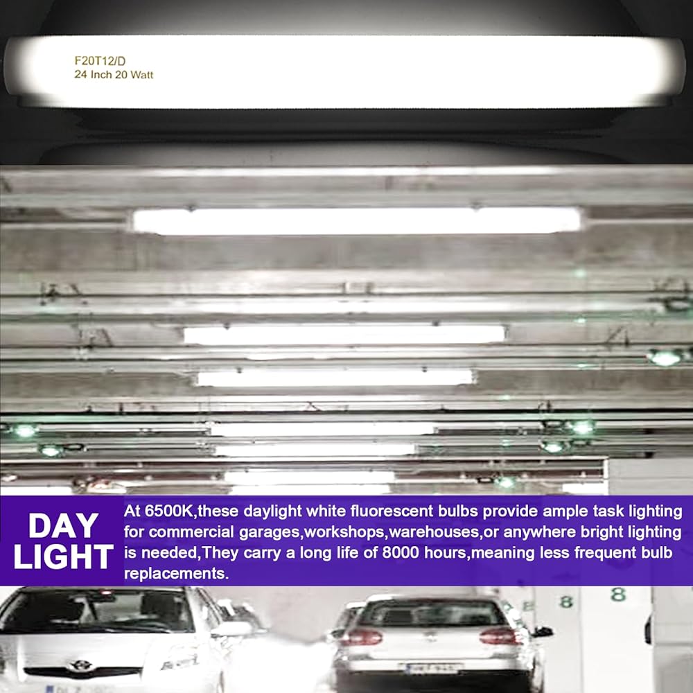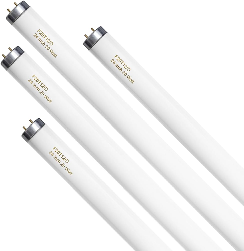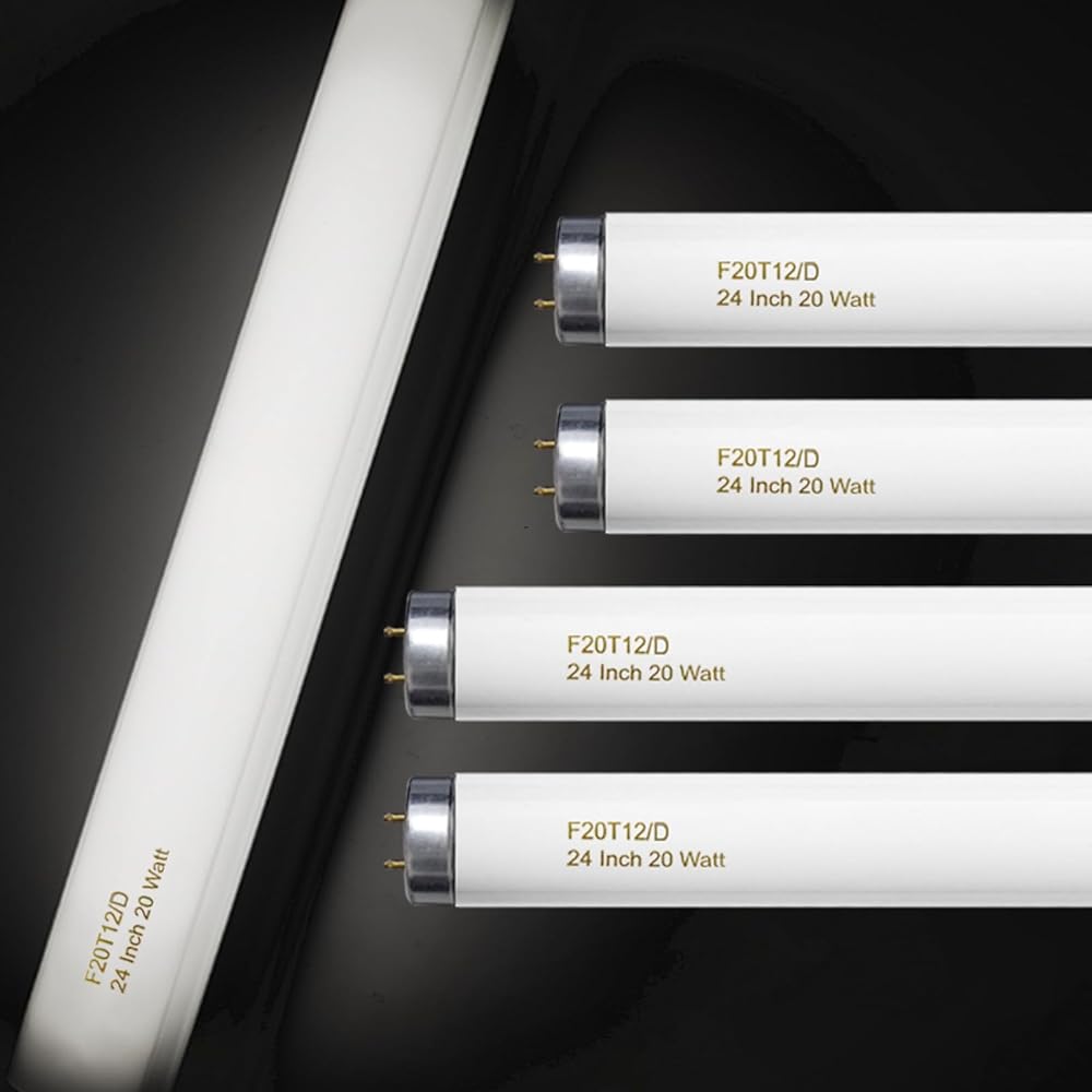 T12 Fluorescent Tube Light Bulb 20 Watt Daylight, F20T12/D Replacement for 79042 F20T12/SUN/ECO F20T12/D/ECO 273284 F20T12/D/ALTO 1100 Lumen G13 Base, 24 Inch 4 Count