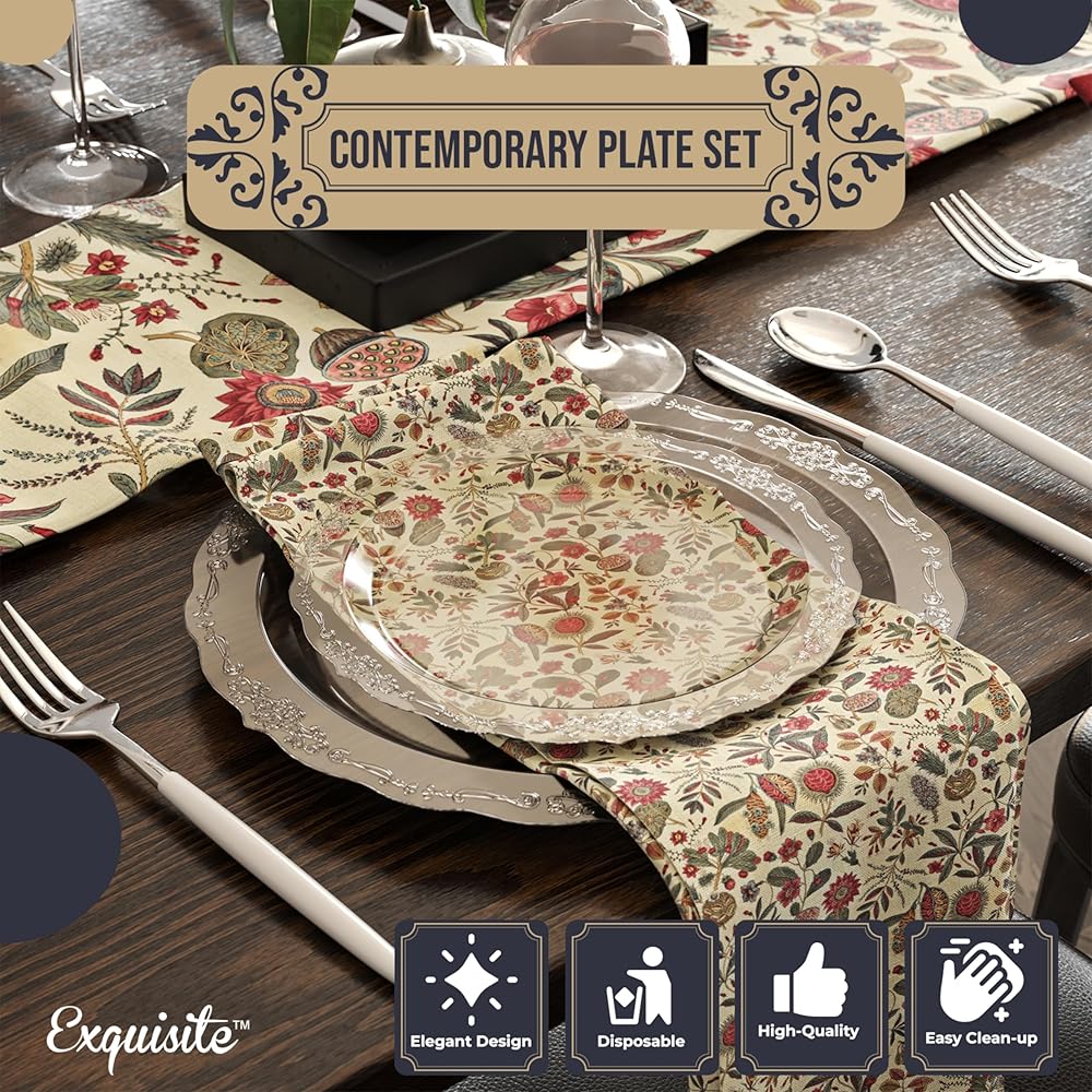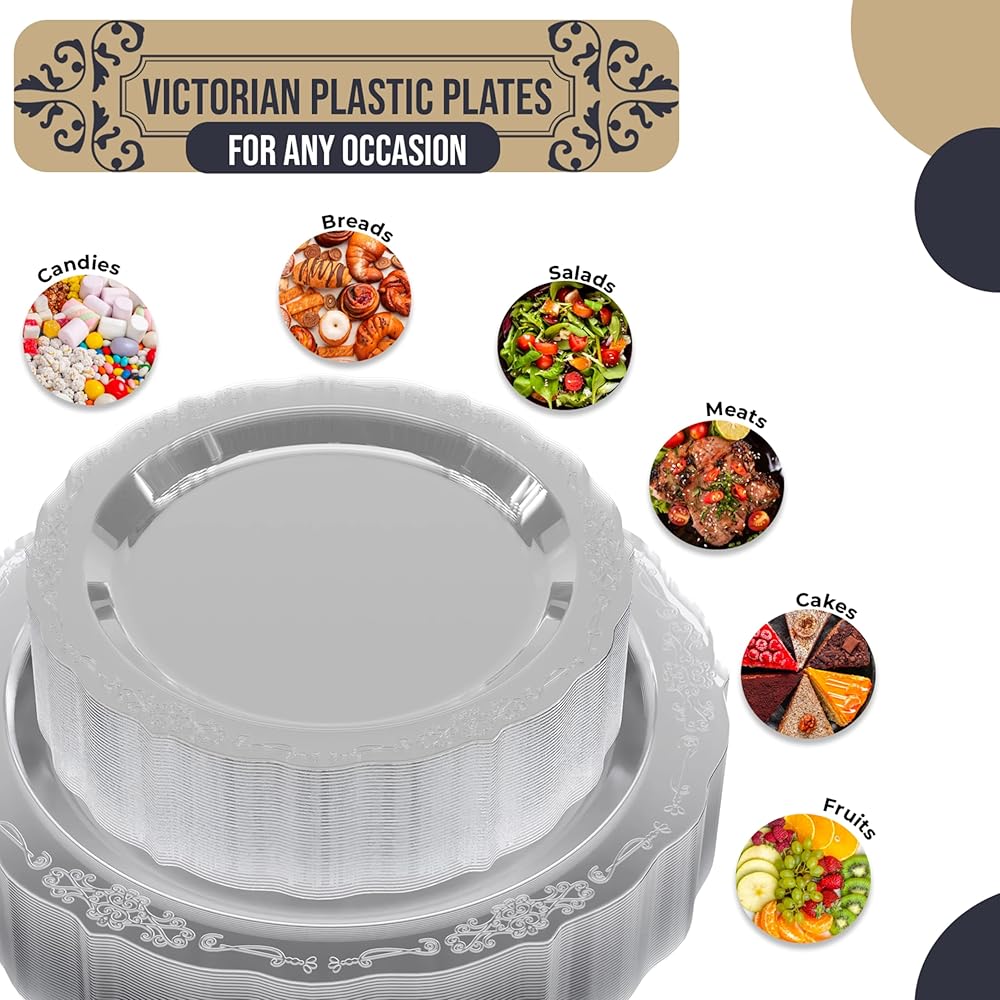 SATISFACTION GUARANTEED: We're sure you'll love our Victorian style plastic plates for party dinnerware & accessories - If for any reason you are not 100% satisfied with our fancy disposable plates - please reach out to us, and we will make sure to take care of the matter. We value our customers and strive to provide the best quality products and service. Your satisfaction is our top priority.