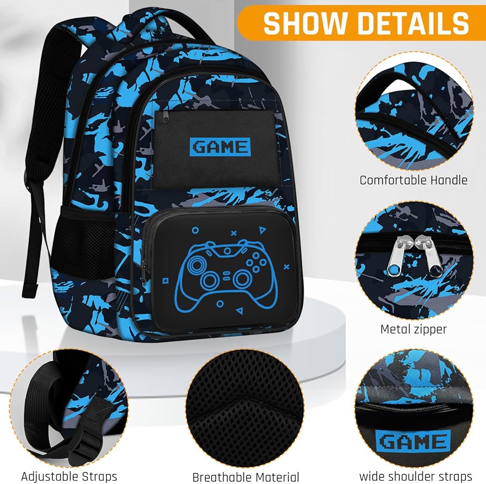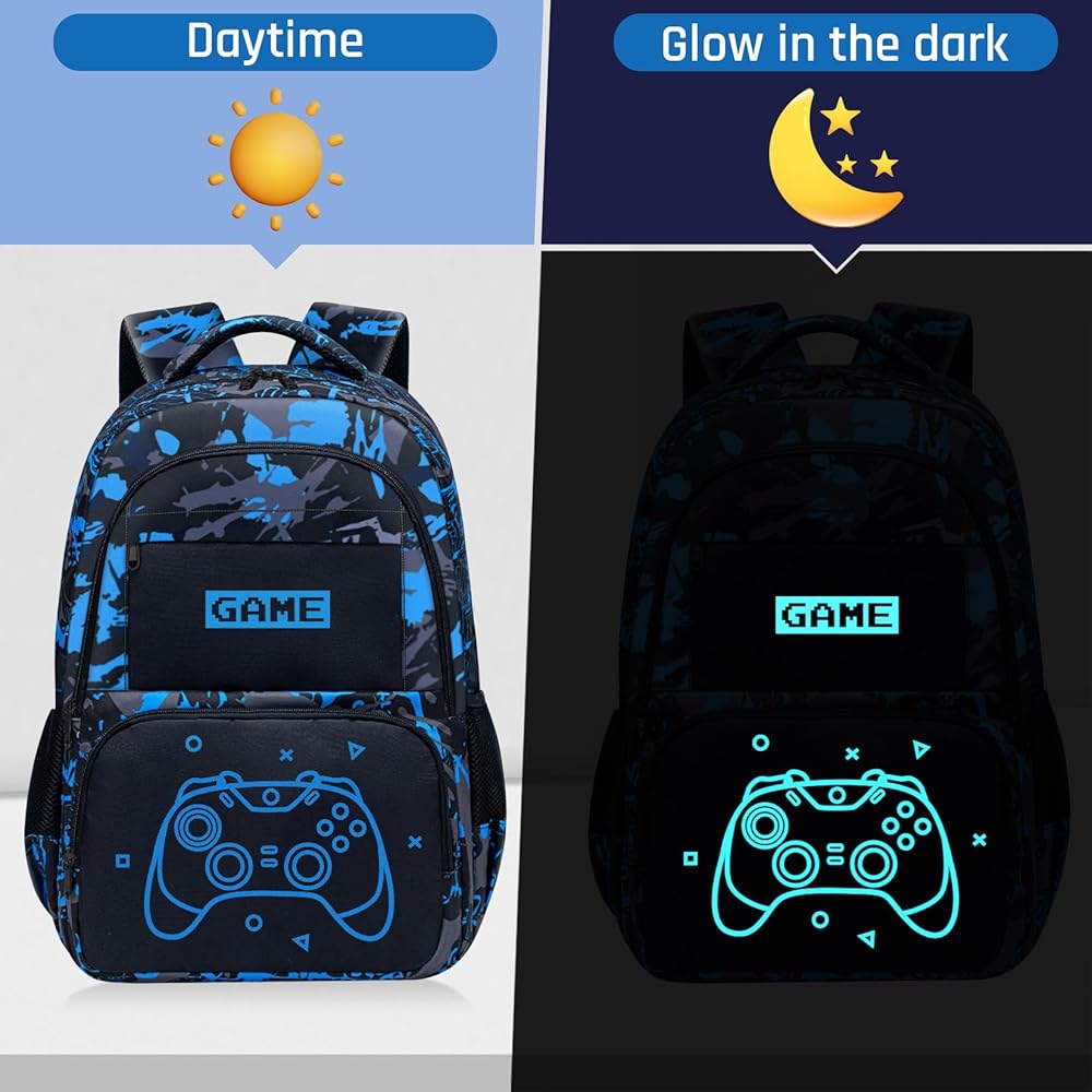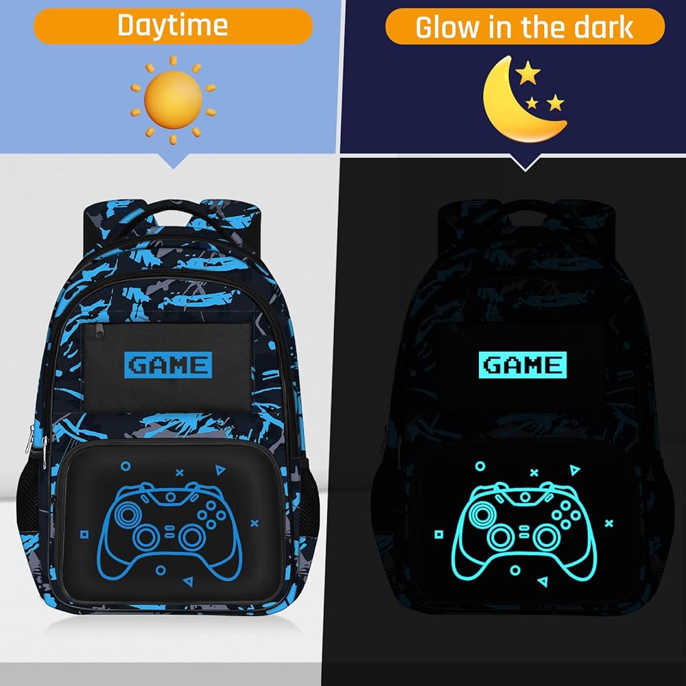Glow in The Dark Backpack for Boys - Game Boys Backpack for Kids Children Teens Elementary Middle School - 17″ Gamer Bookbag Travel Back Pack for Age 6-18