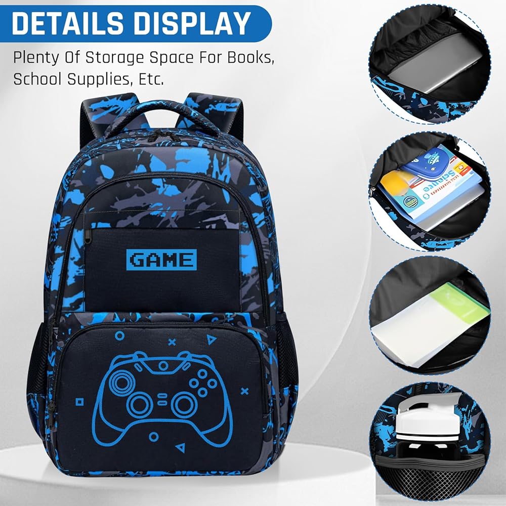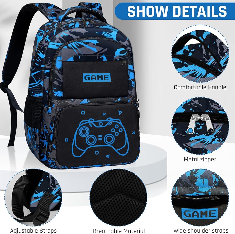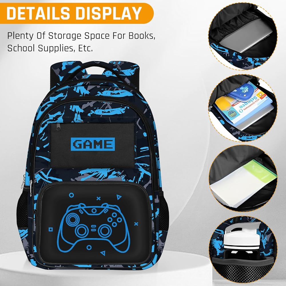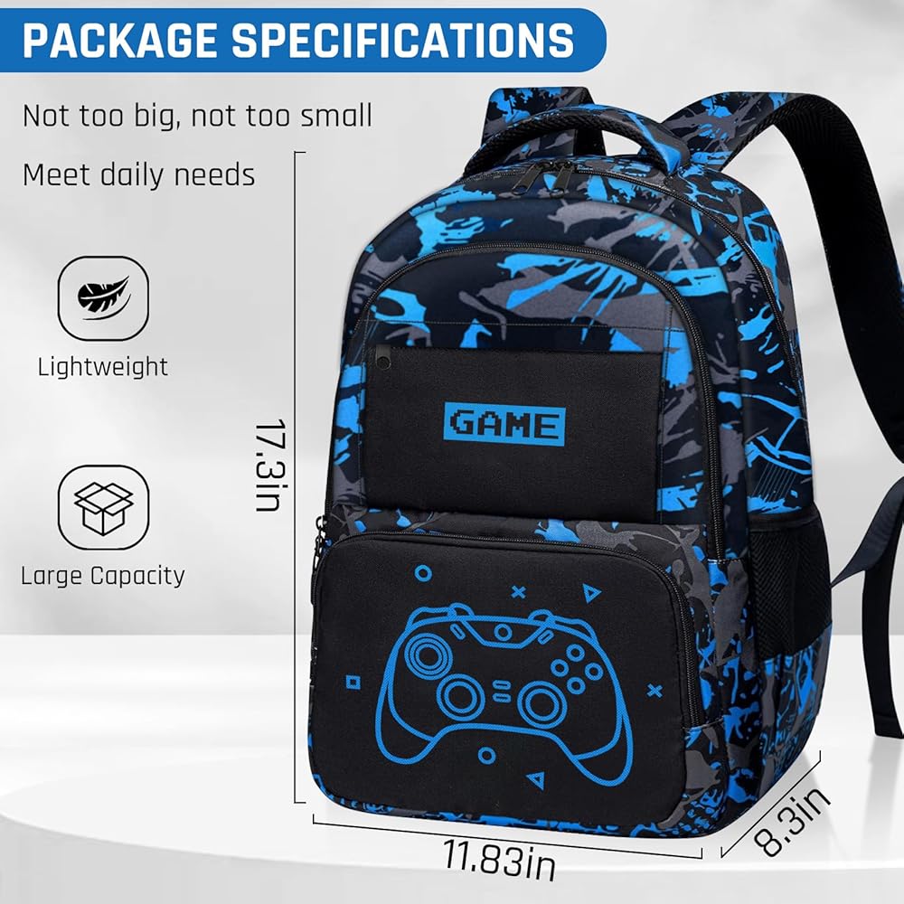 Glow in The Dark Backpack for Boys - Game Boys Backpack for Kids Children Teens Elementary Middle School - 17″ Gamer Bookbag Travel Back Pack for Age 6-18