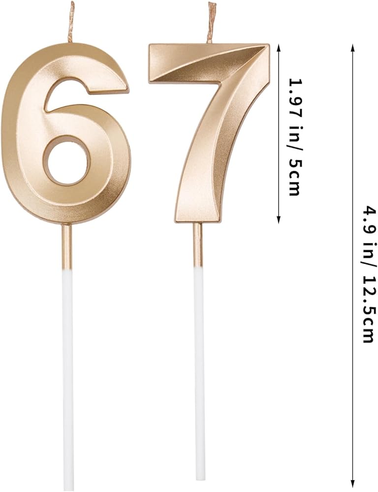 Size - Width: 1.4 in/ 3.5cm. Number Height: 1.97 in/ 5cm. Total height: 4.9 in/ 12.10cm. Perfect size as cake decorations for Birthday Party or Anniversary.