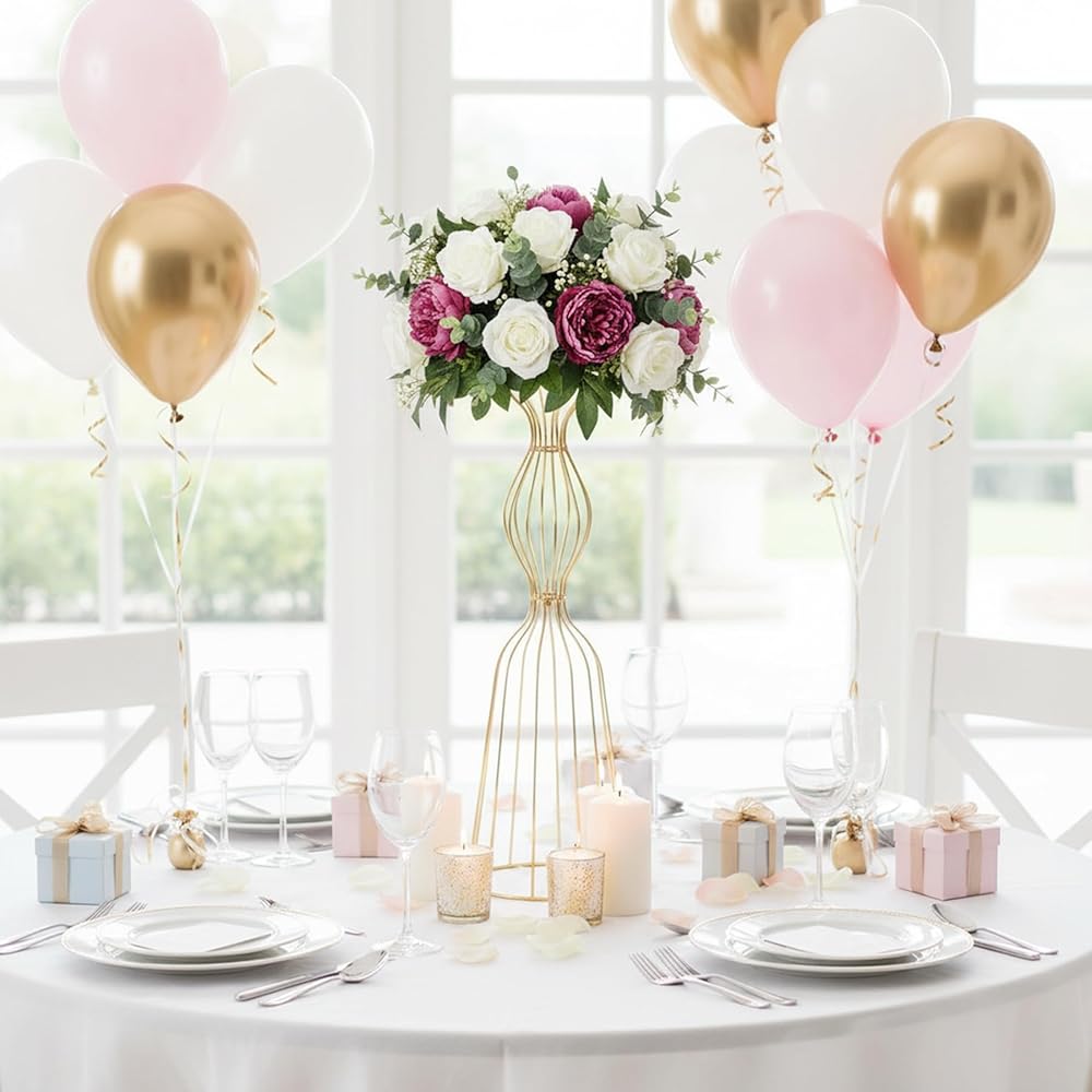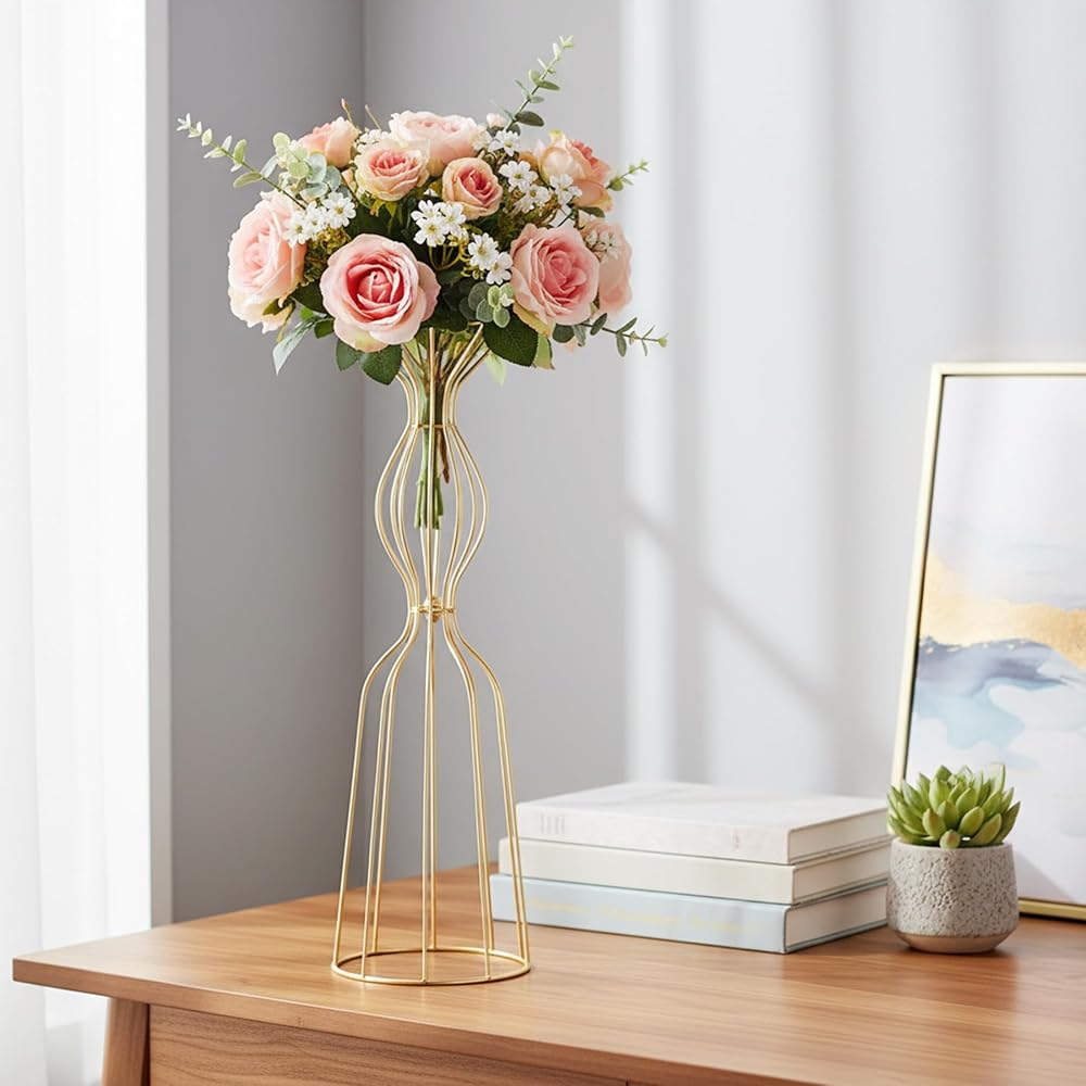 PACKAGE INCLUDES: 2 x 60 cm / 23.6 inches height gold centerpieces wedding flower holder for weddings and events. Artificial flowers are not included. Perfect for wedding or party decoration displays. (Due to the difference of light and screen and different batches of products, the color of the product may be slightly different from the picture, please don't mind,the real thing will be better.)