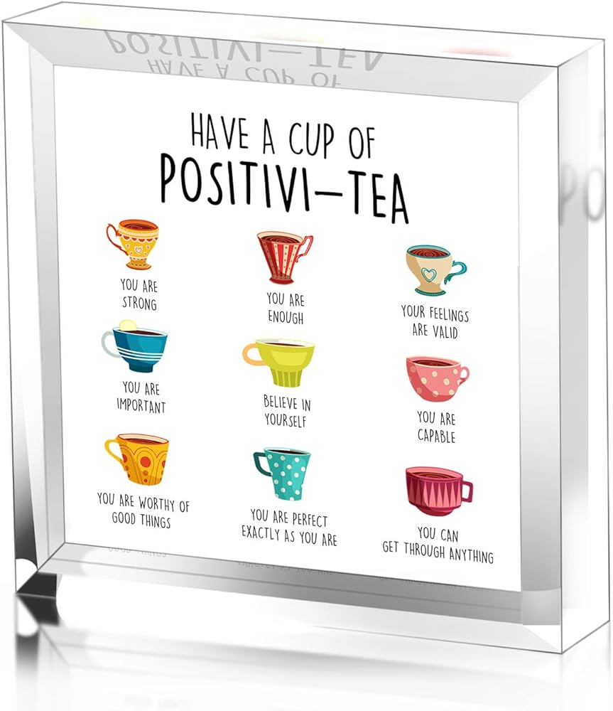 احصل على كوب من الشاي الإيجابي - اقتباس ملهم على شكل كوب ملون للصحة العقلية - ديكور مكتب العلاج - ديكور مستشار المدرسة للعلاج المنزلي والمكتب وغرفة النوم وغرفة النوم هدية تأكيد