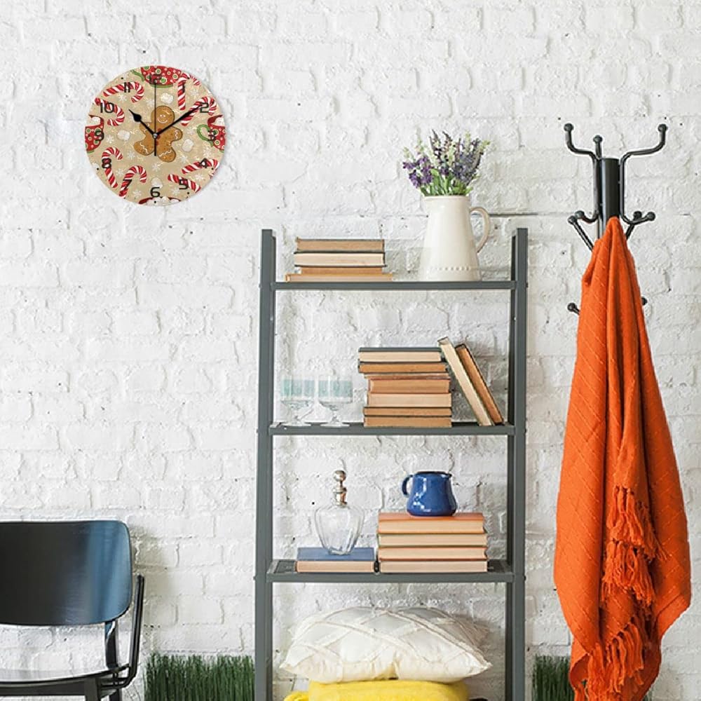 Large Wall Clocks, Cute Christmas Holiday Gingerbread Candy Canes Battery Operated Non Ticking 10 inch Clock Silent Art Bedroom Kitchen Clock Atomic Analog Clocks Home Decor