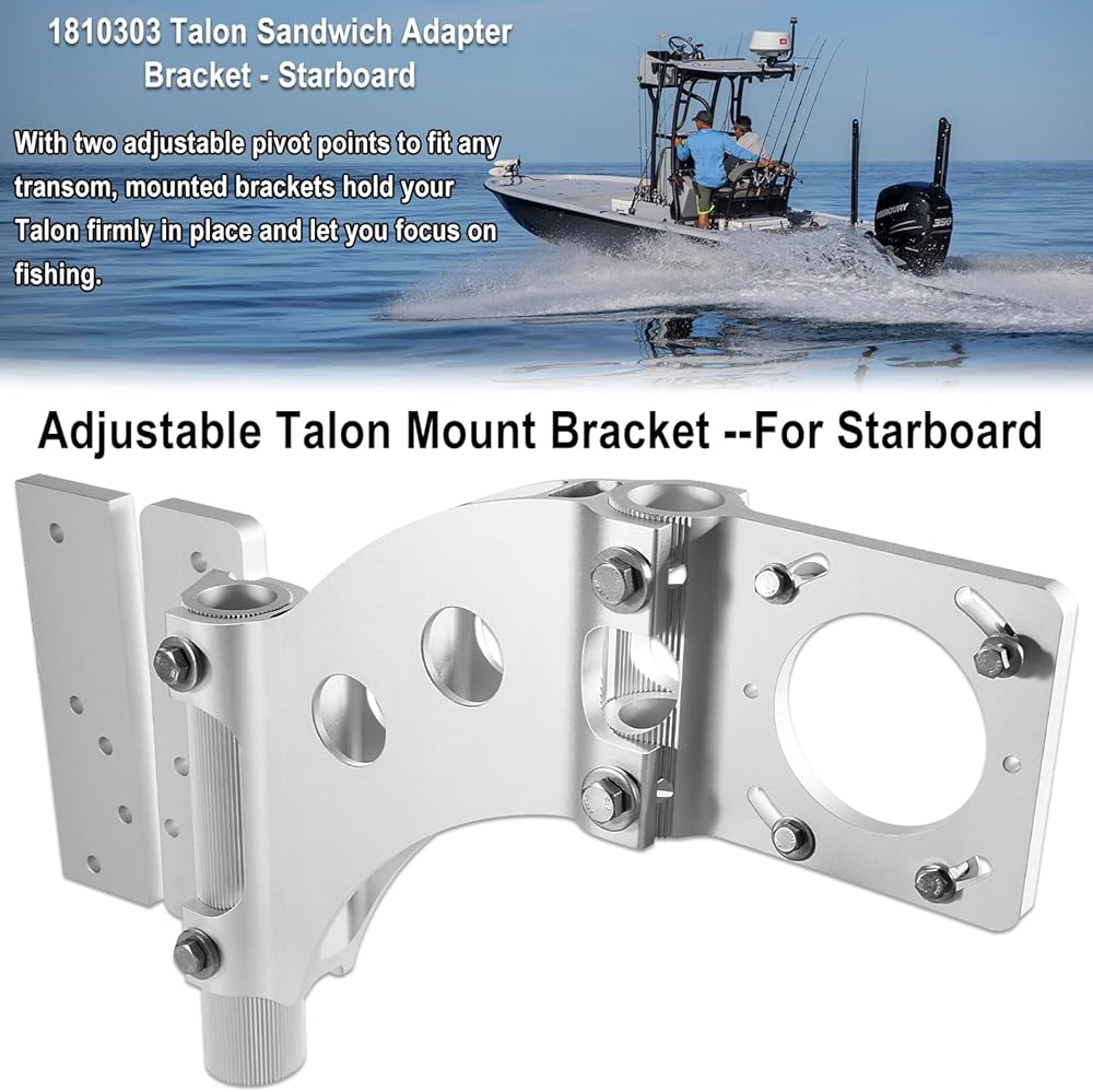 Adjustable Adapter Bracket: The jack plate bracket is compatible with port side of your boat, keeps the talon locked on your boat in any condition, easy to install and very adjustable so you can make it fit about any boat.