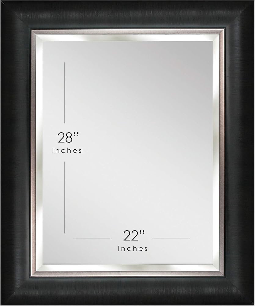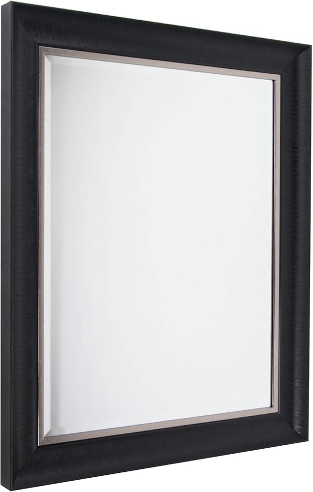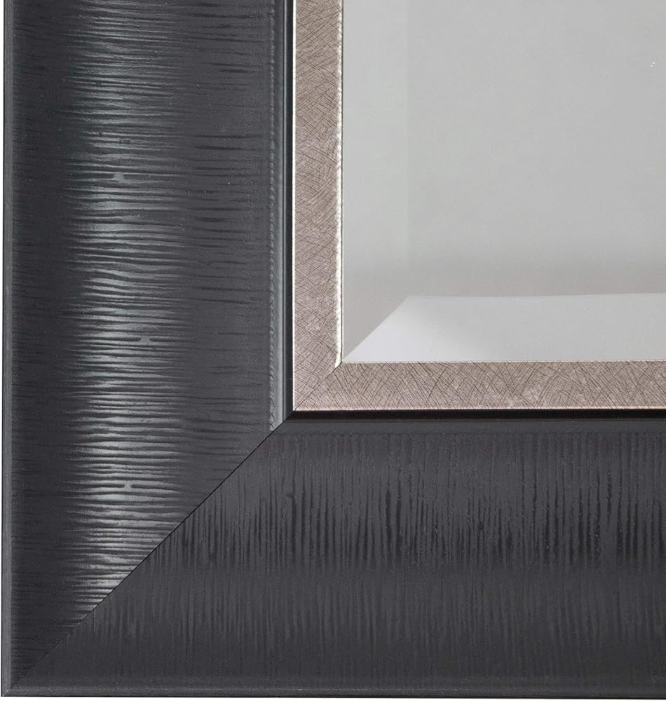 Head West Alderton Black with Silver Pewter Liner Framed Beveled Wall Mounted Vanity Mirror, Decorative Mirrors for Wall Decor, Bathroom Mirrors for Over Sink, Bedroom, Living Room 29.5"x34.5"