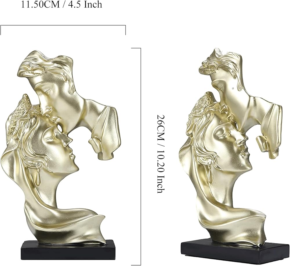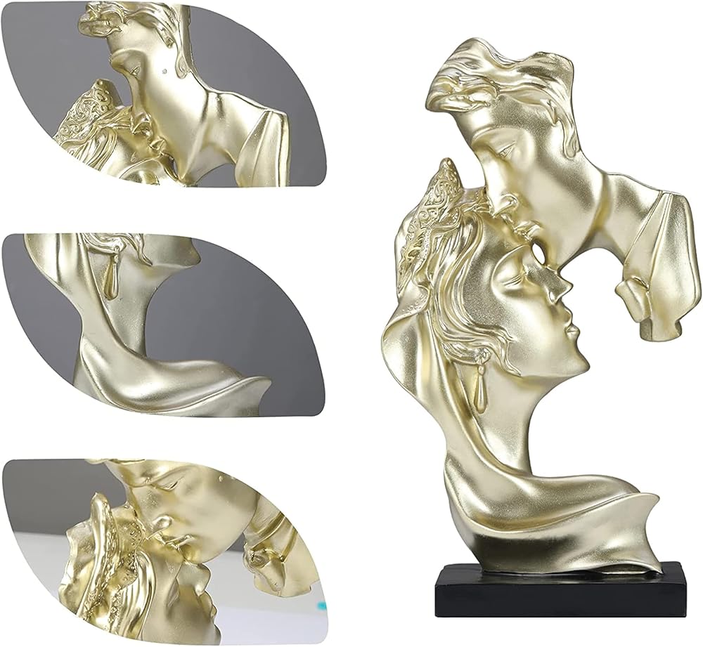 XINXAUN Gold Home Decor Lovers Kiss Couples Figurine Statue Sculpture Abstract Decor for Living Room, Office, Bedroom - Aesthetic Decoration for Bookshelves, Tables (Gold Kiss Couples Figurine)