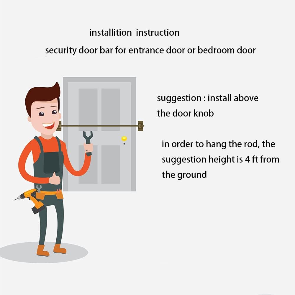 [Easy to install and use] :8 hardened screws make it a breeze to install door barricade. Minimal tools to install - drill, bit, and screwdriver. 44-inch-long bar can fit most size of door