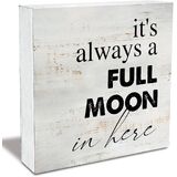 Rustic Full Moon Bathroom Wood Box Sign Humor Toilet Wooden Box Sign Farmhouse Home Restroom Desk Shelf Decor (5 X 5 Inch)