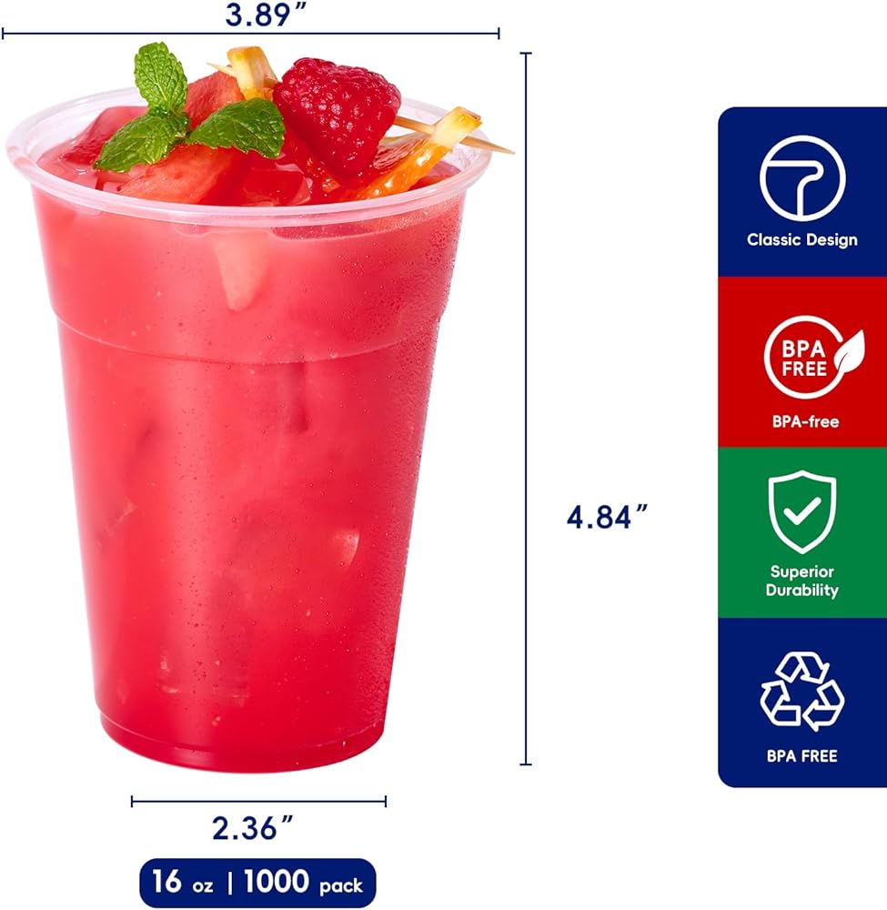 Great Value-You will get 1000 packs of 12 oz clear plastic cups at a cheap price. Our clear cups are heavier than those sold in other stores. In this way, the plastic cup is not easily deformed. Can't use all 1000 in 1 gathering? No problem, store the extras in their already sealed packaging.