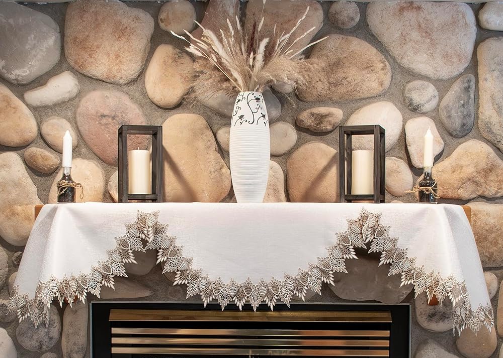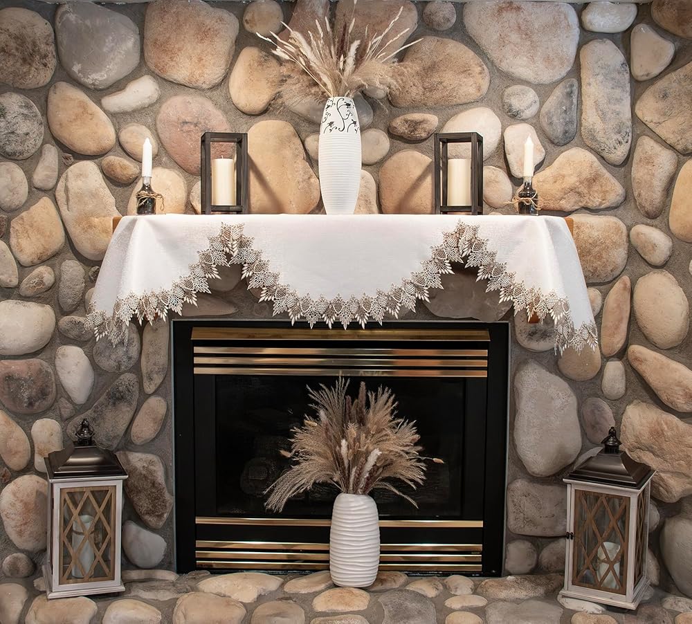 Versatile Size Options: The neutral beige and white lace color effortlessly blends with various color palettes, allowing you to easily incorporate the scarf into your existing decor. Adding a table runner to a coffee table or doily to the end tables, the Mantle Scarf will enhance your space and complete your living room decor. Whether your home features vibrant, bold colors, or more subdued neutral tones, the beige color will harmonize with any decor and surroundings.