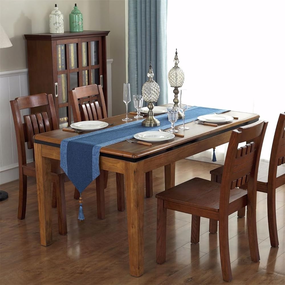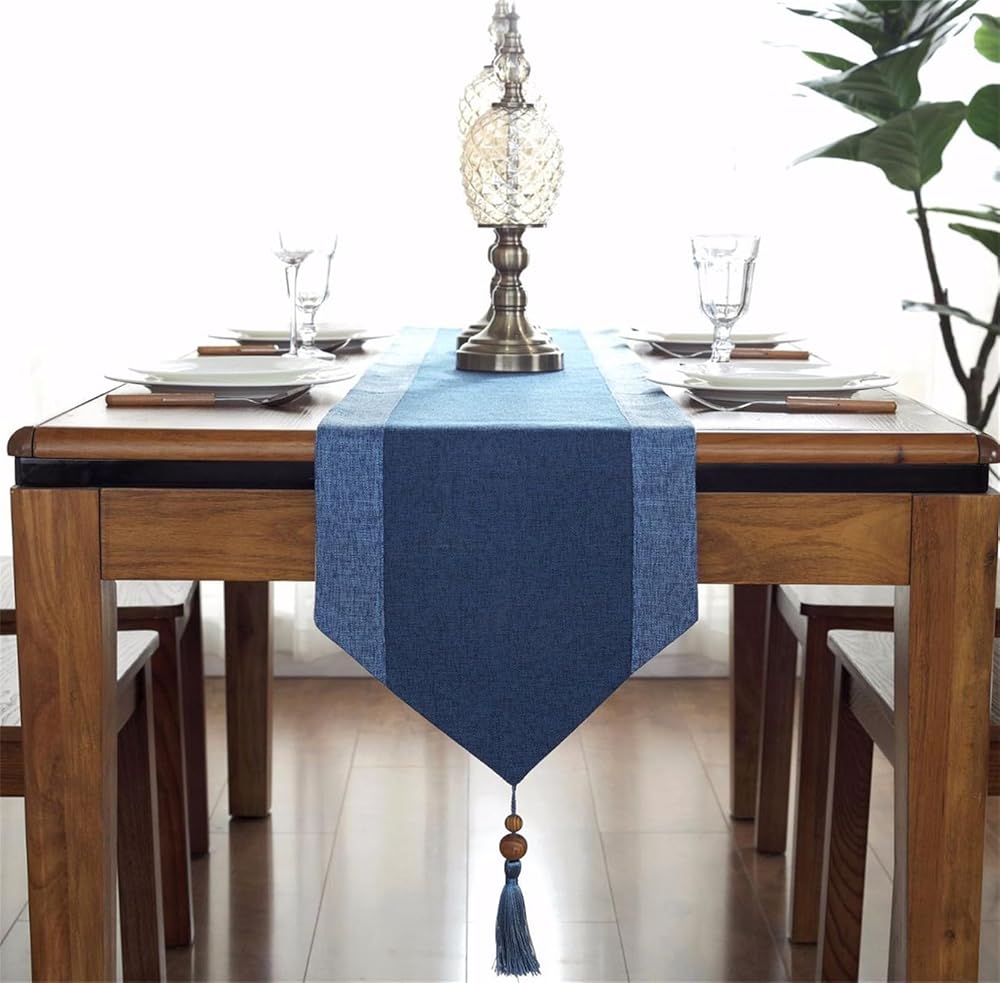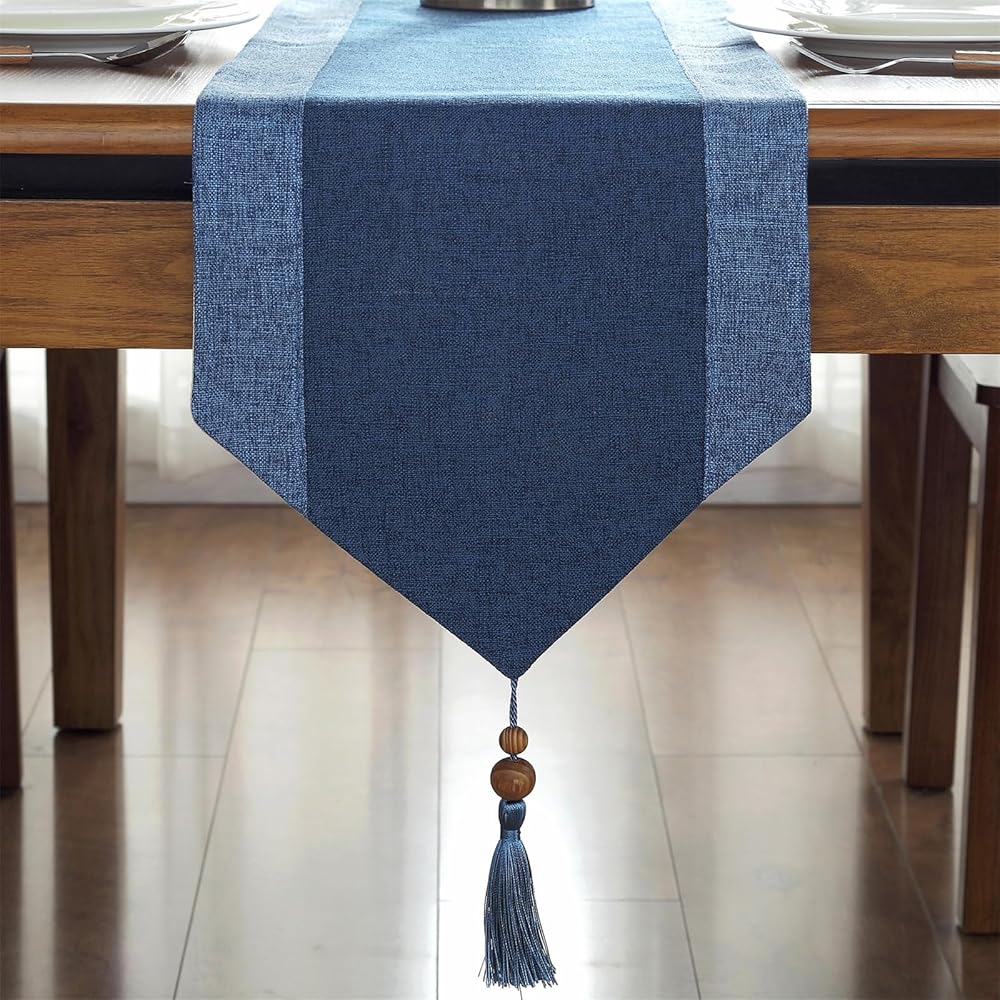 Linen Textured Table Runner, Two-Colors Rustic Farmhouse Table Runner with Tassel for Everyday Dining Wedding Party Holiday Home Decor, 13 x 72 Inch, Blue