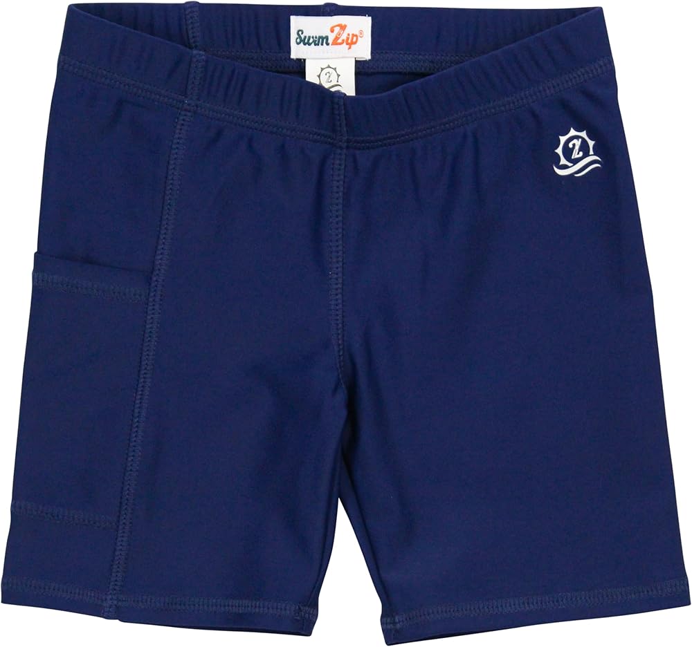 SwimZip's Kids' Jammer Swim Shorts give your boy or girl that "racing" look in the pool or at the beach! These are tight-fitting swim trunks that hit the mid-thigh area and are made from lightweight, stretchy, quick-drying, comfortable material. The handy side pocket gives your child the option to carry some treasure. And because it's from SwimZip, it features the highest sun protection rating of UPF 50+! In toddler, little kid, and big kid sizes.