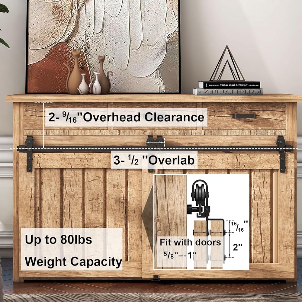 Scope of Application: The 7FT sliding door hardware kit accommodates the maximum door width: 45"; fits door thickness: 1/2"- 1 1/8"; maximum weight capacity: 60lbs. [Notice: only suitable for wooden