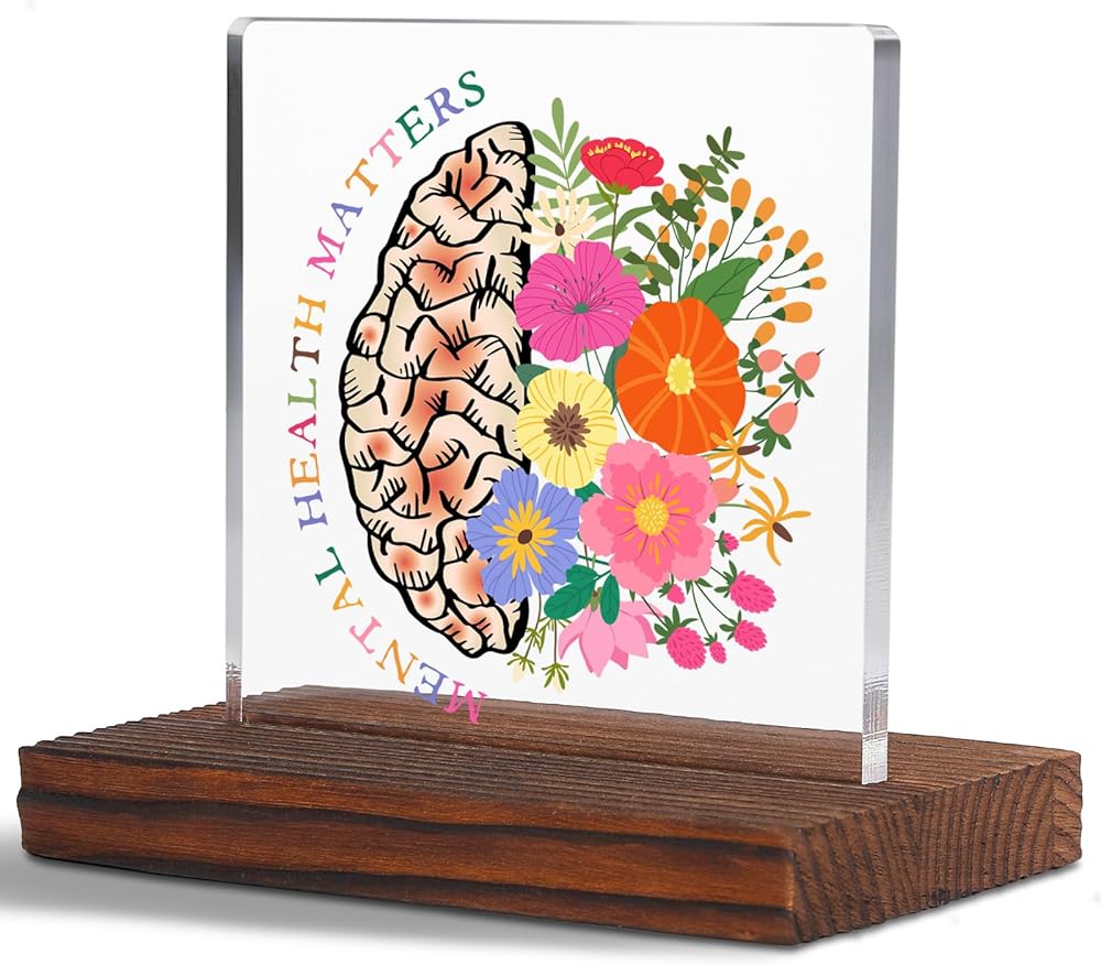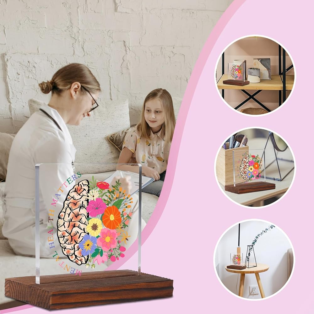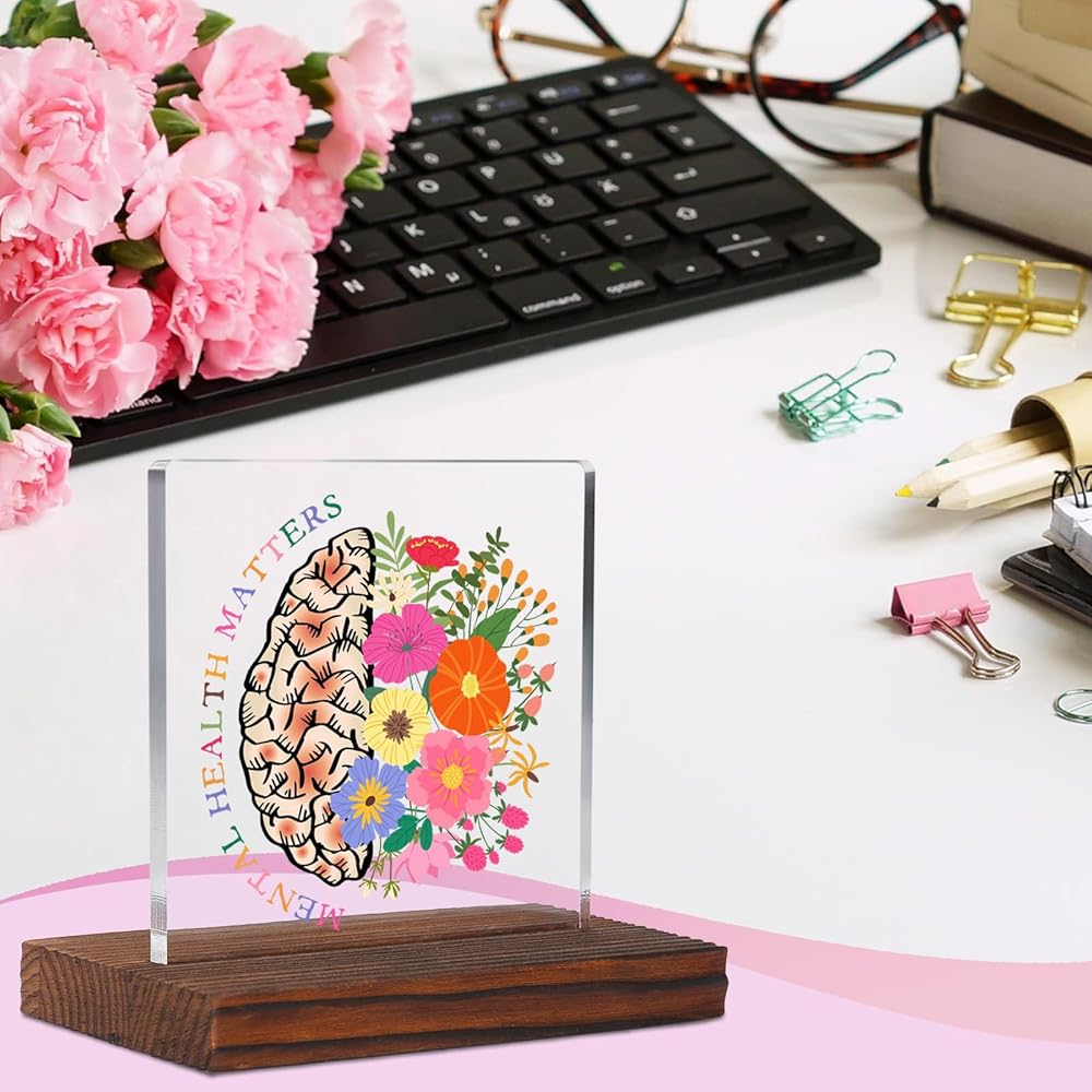 Mental Health Matters School Psychologist Gift Clear Desk Decor Signs, Graduation Gift for Psychiatrist Acrylic Plaque, Appreciation Thank You Gifts Mental Health Therapist Office Decor Signs TZD60