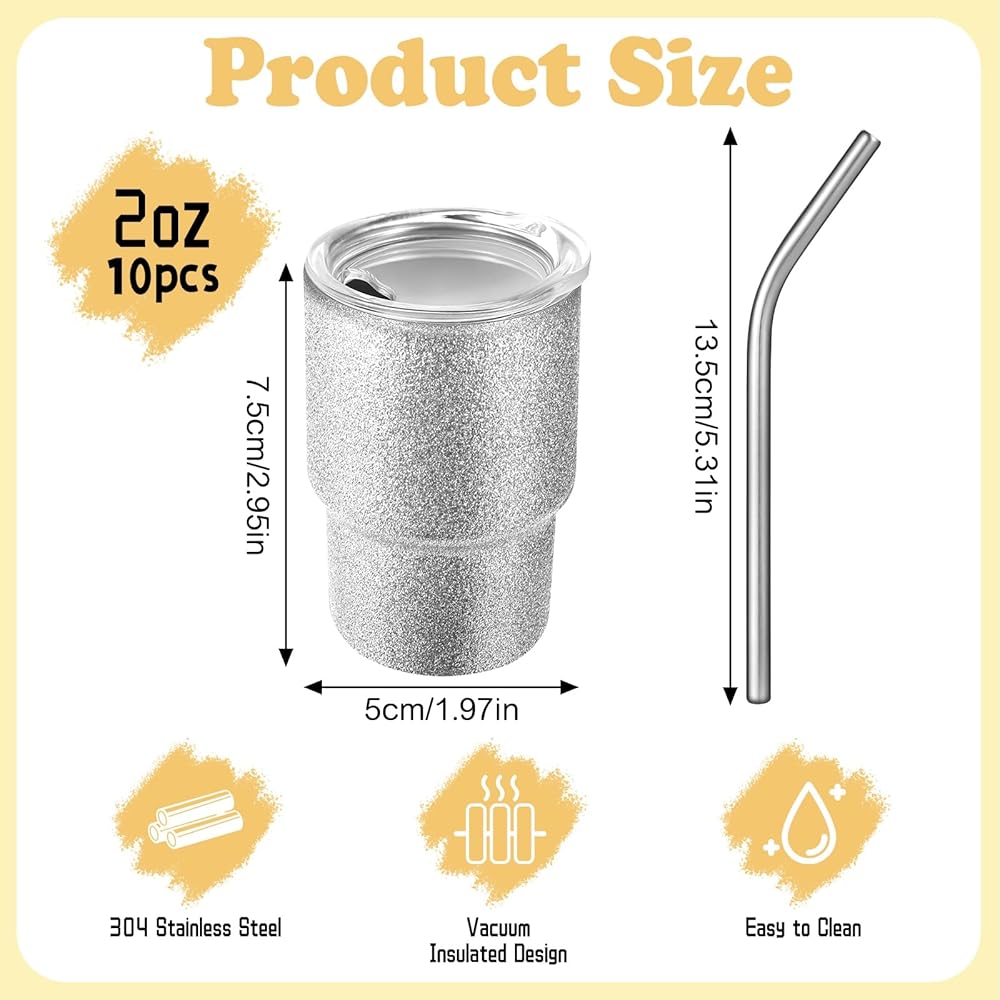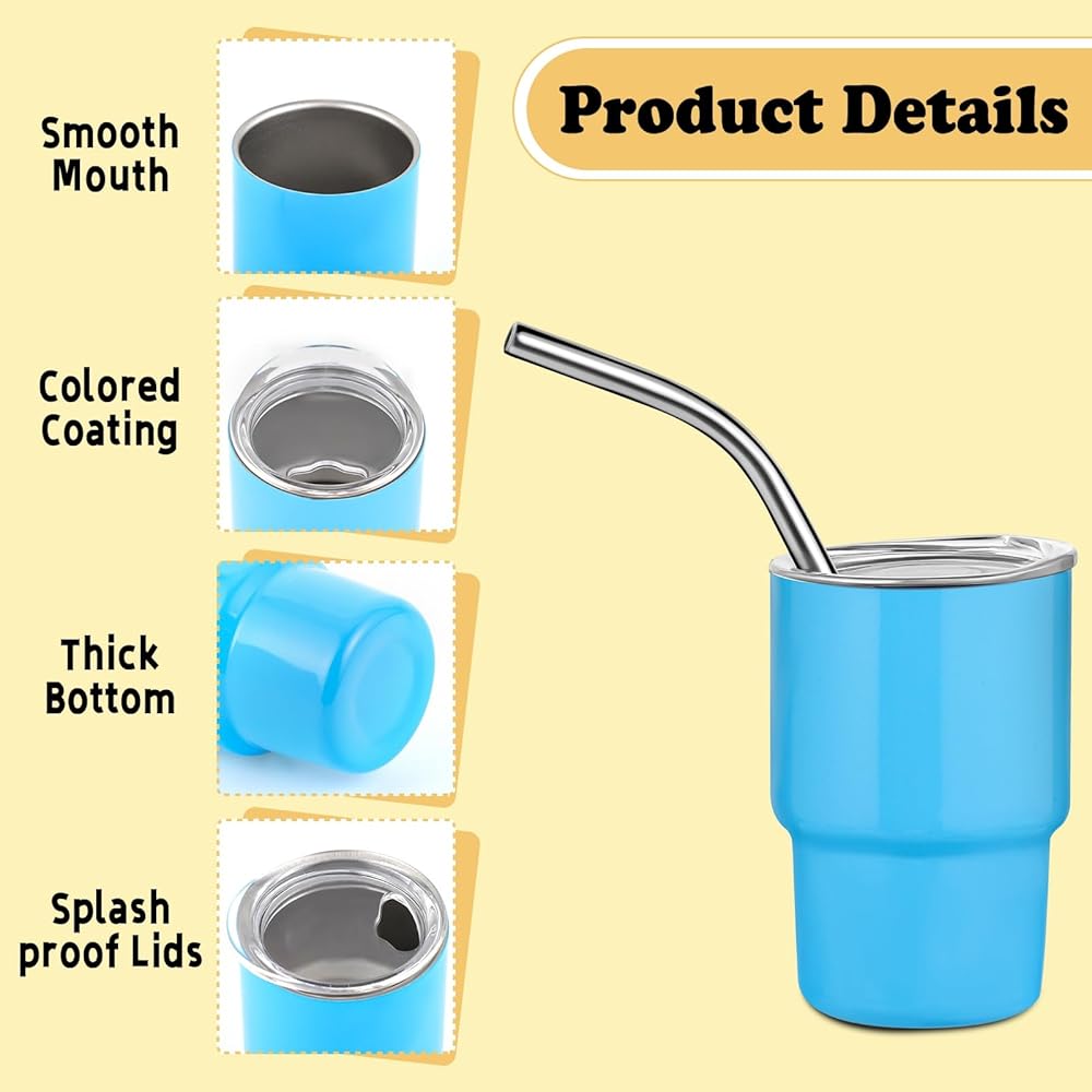 【With Lids and Straws】The lid and straw design of our mini tumblers prevents spillage and allows for convenient sipping. The secure lids ensure that your drinks stay contained, preventing spills or leaks.
