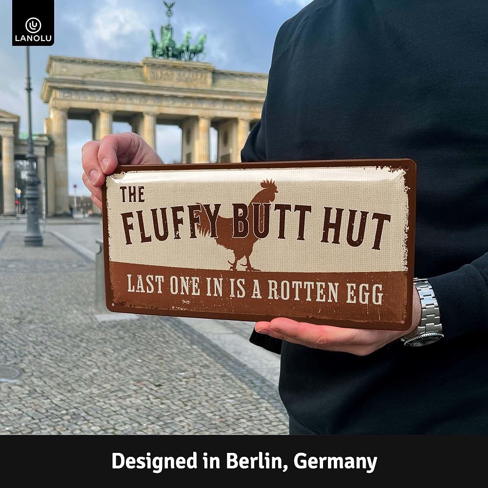 DESIGNED IN GERMANY: Our embossed tin signs are designed in Germany, ensuring a high level of detail and quality. Made of thick steel, these signs are not only humorous but also durable, making them a great addition to any chicken coop or home decor.