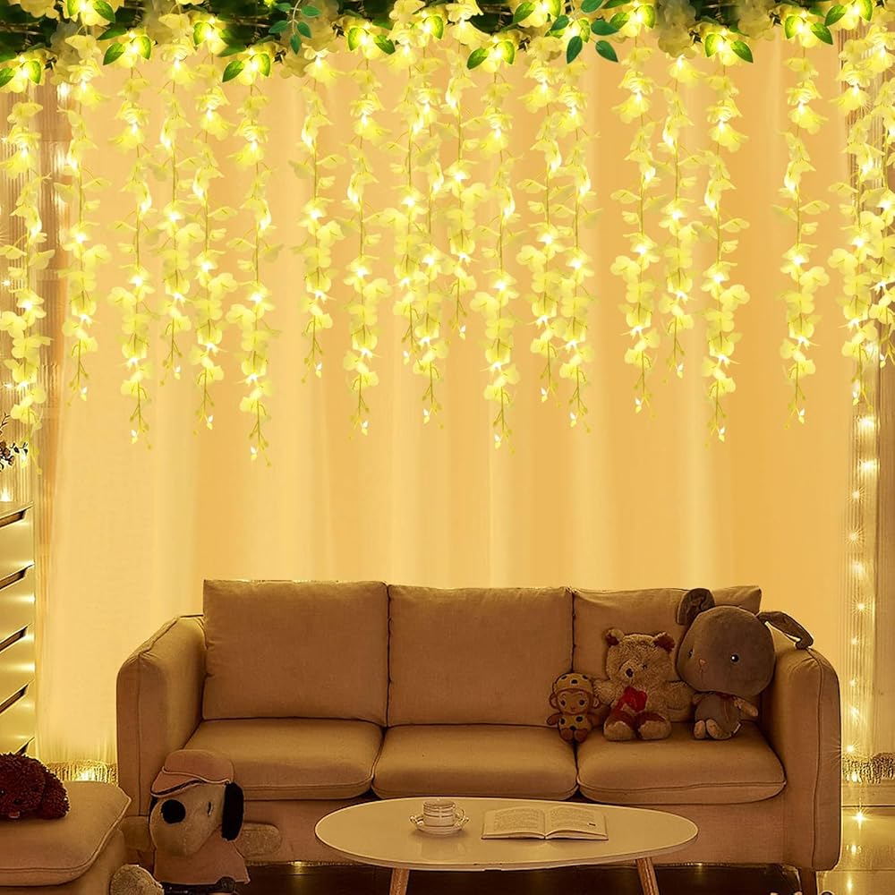 【Easy to install-Curtain Design】Compare with the separated vines, the curtain wisteria flowers are quick and convenient to set up in one time, no need to hang up the flowers one by one. Super easy to set up and take down,easily bend it for hanging!
